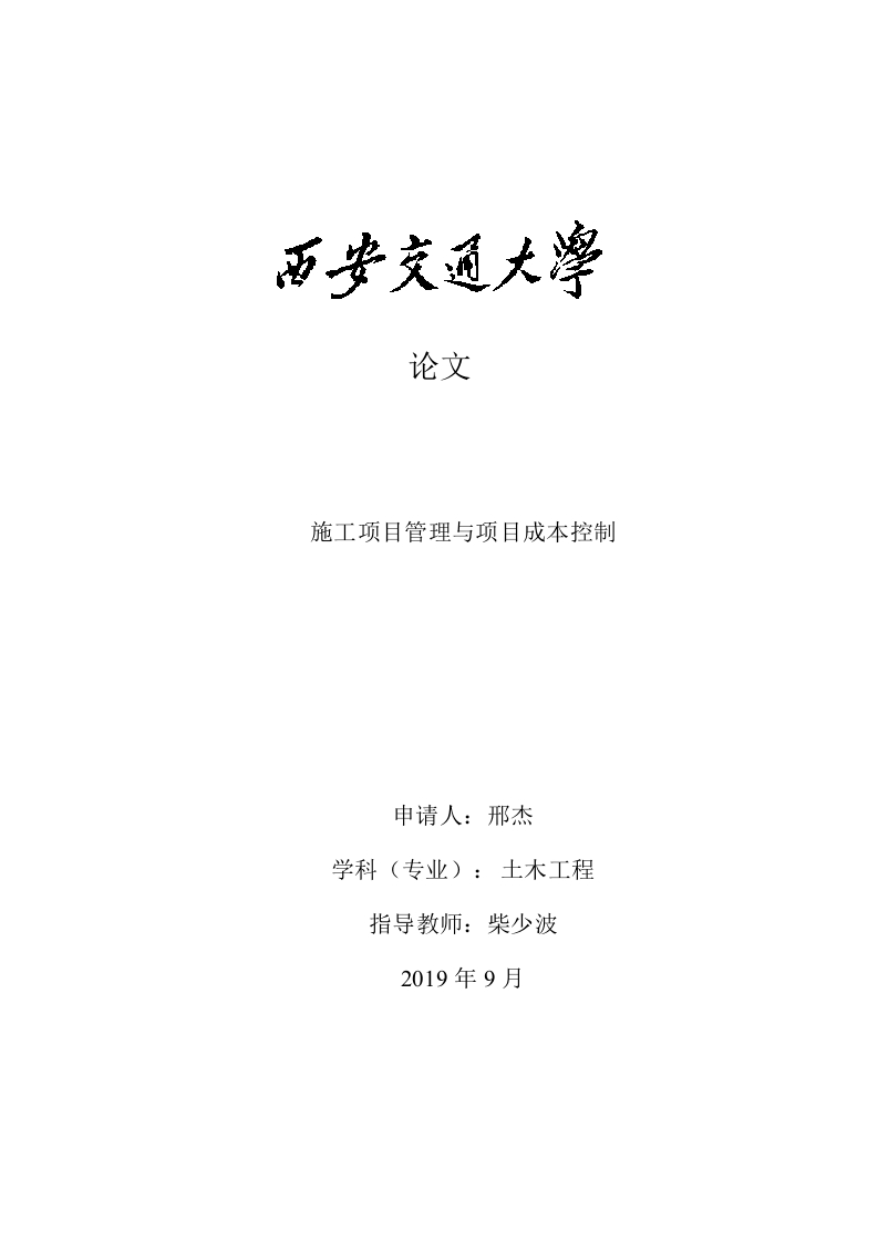 论文施工项目管理与项目成本控制申请人:邢杰学科(专业):土木工程指导教师:柴少波2019年9月网络教育学院毕业设计(论文)任务书专业班级土木工程1709层次专升本姓名邢杰学号117093923410024一、毕业设计(论文)题目施工项目管理与项目成本控制二、毕业设计(论文)工作自2019年5月22日起至2019年9月26日止三、毕业设计(论文)基本要求:指导教师:柴少波网络教育学院毕业设计(论文)考核评议书指导教师评语:建议成绩:指导教师签名:年月日答辩小组意见:负责人签名年月日答辩小组成员毕业设计(论文)答辩委员会意见:负责人签名:年月日
