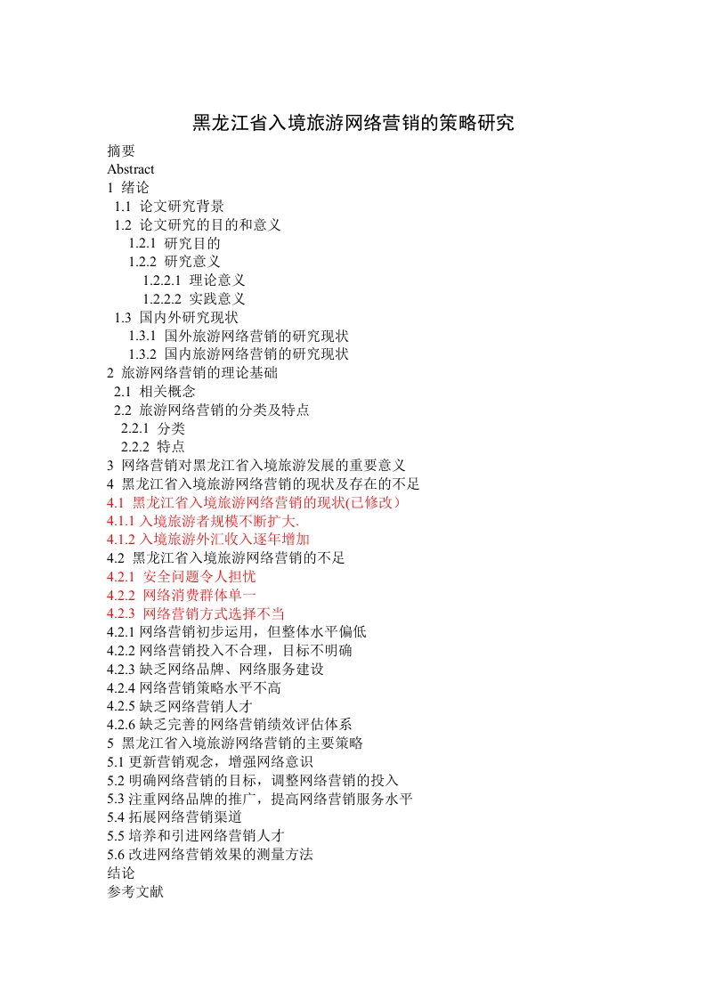 黑龙江省入境旅游网络营销的策略研究摘要Abstract1绪论1.1论文研究背景1.2论文研究的目的和意义1.2.1研究目的1.2.2研究意义1.2.2.1理论意义1.2.2.2实践意义1.3国内外研究现状1.3.1国外旅游网络营销的研究现状1.3.2国内旅游网络营销的研究现状2旅游网络营销的理论基础2.1相关概念2.2旅游网络营销的分类及特点2.2.1分类2.2.2特点3网络营销对黑龙江省入境旅游发展的重要意义4黑龙江省入境旅游网络营销的现状及存在的不足4.1黑龙江省入境旅游网络营销的现状(已修改)4.1.1入境旅游者规模不断扩大4.1.2入境旅游外汇收入逐年增加4.2黑龙江省入境旅游网络营销的不足4.2.1安全问题令人担忧4.2.2网络消费群体单一4.2.3网络营销方式选择不当4.2.1网络营销初步运用,但整体水平偏低4.2.2网络营销投入不合理,目标不明确4.2.3缺乏网络品牌、网络服务建设4.2.4网络营销策略水平不高4.2.5缺乏网络营销人才4.2.6缺乏完善的网络营销绩效评估体系5黑龙江省入境旅游网络营销的主要策略5.1更新营销观念,增强网络意识5.2明确网络营销的目标,调整网络营销的投入5.3注重网络品牌的推广,提高网络营销服务水平5.4拓展网络营销渠道5.5培养和引进网络营销人才5.6改进网络营销效果的测量方法结论参考文献致谢附录