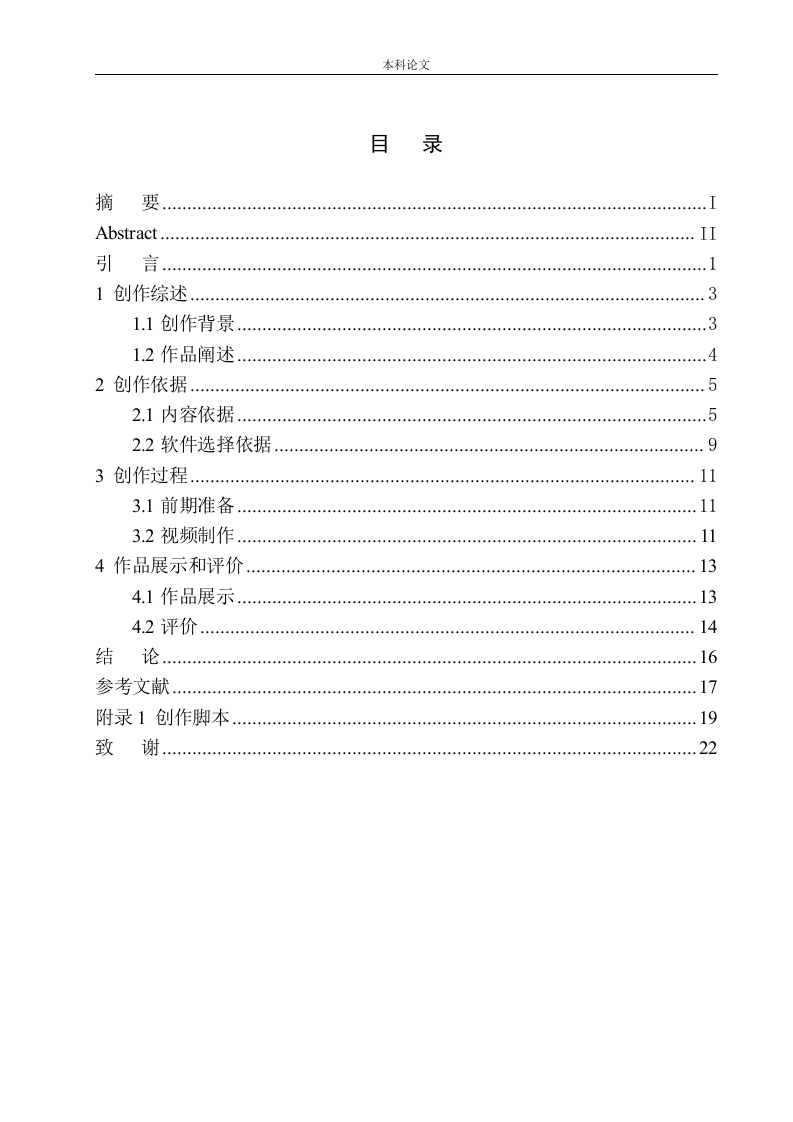 本科论文目录摘要...........Abstract引1创作综述31.1创作背景31.2作品阐述2创作依据.2.1内容依据2.2软件选择依据93创作过程113.1前期准备113.2视频制作114作品展示和评价134.1作品展示134.2评价14结论…16参考文献…444444417附录1创作脚本19致22本科论文摘要现在汉服文化在广大群众中,以年轻人为甚形成了一种新兴的文化潮流,尤其是在一些新媒体平台上引起了广泛关注。汉服在一定程度上代表了汉文化,促进了汉文化的传播。而本次课题采用微动画形式,将汉服的历史文化简单的表达出来,用新兴媒体手段来展现汉服文化,形成汉服文化与现代文化的碰撞。在此方面比较符合未来发展的潮流,也可以让更多人通过本次课题了解汉服的历史。虽然汉服文化已经被更多人知道了解,但仍然有一些人不接受汉服。本作品通过微电影进行汉服文化传播能够更直观的展现出汉服文化的魅力,提高传播效率,更加促进汉服文化的广泛传播。本作品以矢量图层动画的形式,通过连贯的故事画面展现出几个具有代表性朝代的汉服,不经意的展现同时代的汉服特点和风格,主要通过运用ps,flash,pr等软件进行素材制作、动画和剪辑的制作,展现一个女孩子的汉服梦。关键词:汉服:动画微电影:传统文化本科论文AbstractNowadays Hanfu culture has formed a new cultural trend among the youngpeople,especially in some New media platforms.Hanfu culture representschinese culture to some extent ,meanwhile ,promotes the spread of Chineseculture.This topic expresses the history and culture of Hanfu in the form ofmicro-animation,with the media to show Hanfu culture,forming the collisionbetween Hanfu culture and modern culture.It's in line with the trend of culturaldevelopment and let more people through this topic to understand the history ofHanfu.Although Hanfu culture has been known to more people,there are stillsome people Don't accept Hanfu.This work can show the charm of Hanfuculture more intuitively,improve communication efficiency and promote thewide spread of Hanfu culture.By using the form of vector layer animation,thiswork shows several representative Hanfu of the dynasty through the coherentstory picture,it shows the characteristics and style of the contemporary Hanfu,mainly through the use of ps,flash,pr and other software for material production,animation and editing production,showing a girl's dream of Hanfu.Keywords:Hanfu;Animated micro films;The traditional culture