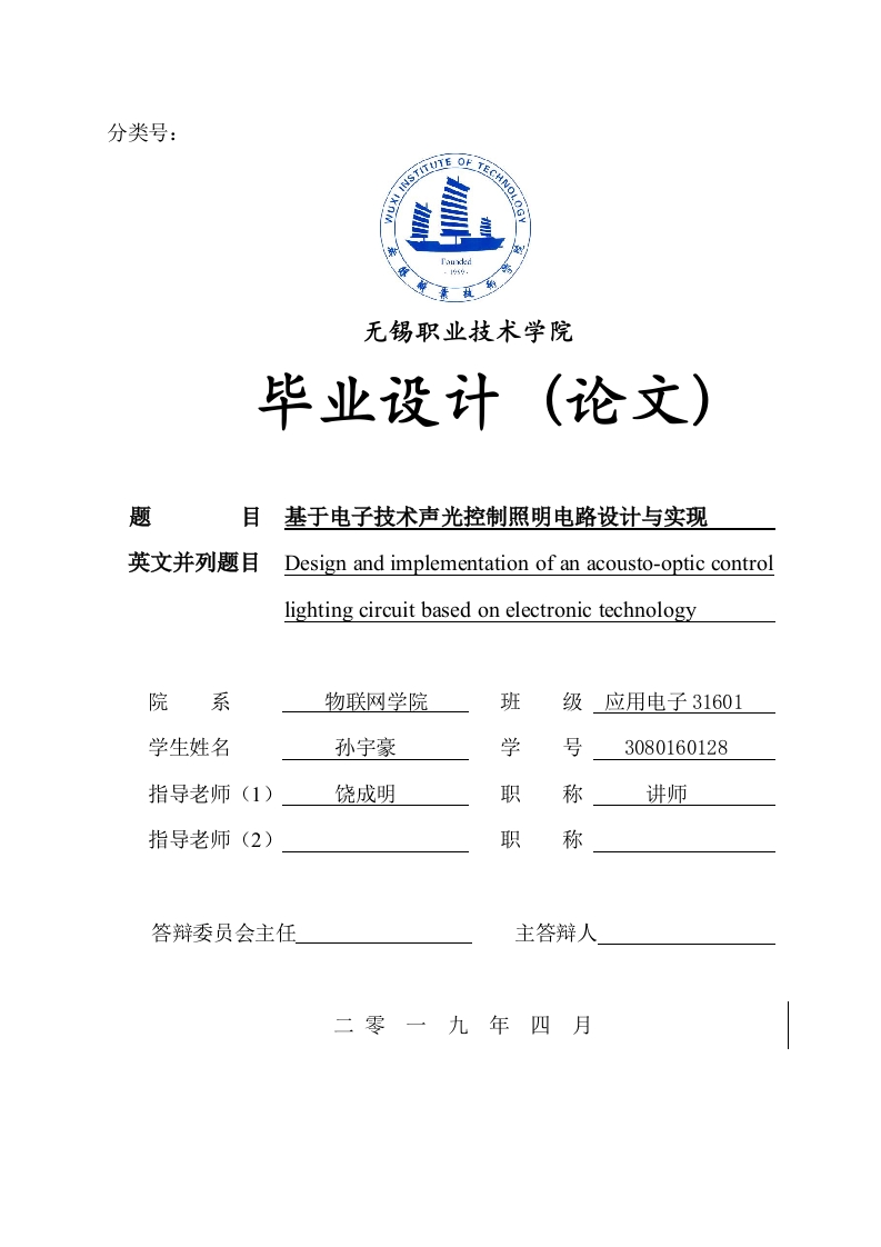 分类号:无锡职业技术学院毕业设计(论文)题目基于电子技术声光控制照明电路设计与实现英文并列题目Design and implementation of an acousto-optic controllighting circuit based on electronic technology院系物联网学院班级应用电子31601学生姓名孙宇豪学号3080160128指导老师(1)饶成明职称讲师指导老师(2)职称答辩委员会主任主答辩人二零一九年四月无锡职业技术学院毕业设计(论文)说明书目录、绪论31.2项目研究目的及意义…1.2.1项目研究的目的.1.2.2项目研究的意义…51.3.2因外现状…671.5当今市场上声控灯的类型.8二.声光两控灯系统的总体设计…992.1.1声控灯工作原理…92.2.设计内容与要求…三,声光控制照明电路系统的硬件设计与检查,.113.】独立元器件的检查133.2光照检测电路的检测…3.3声音检测电路的检测…133.4声级计的检查维修…14第四章声光控制照明电路系统的电路设计,.151542开关电路….154.3声音控制电路…1644延时电路17五,声光两控系统的软件设计与调试185.】软件设计185.2软件调试…18六总结与致谢6.2致谢20参考文献…20附录…无锡职业技术学院毕业设计(论文)说明书基于电子技术声光控制照明电路设计与实现摘要:声光控制照明电路的设计和应用,有效降低了夜间居民区,工厂等场所的照明功耗。本文探讨了声光控制照明电路设计的意义,研究了基于电子技术的声光控制照明电路的设计思想和电路图,并对电路图中的各种结构进行了说明。最后,本文总结了全文。近些年来,节能减排是中国倡导的发展理念。避免资源浪费不仅是中国各行业企业需要做的工作,也应该在各种生活场景中实施和实施。在过去的阶段,由于夜间灯火通明,中国的学校,工厂,住宅区等地造成了大量的电力损失。虽然手控照明灯的参考有效地降低了夜间照明所使用的功率,但可以肯定。随着科学技术的不断发展,已经开发出一种声光控制照明电路,它突破了传统的照明控制方法,带来了质的飞跃。经过对比,本文选用51单片机平台作为声光控制的核心,控制灯的亮和灭,在传感器的使用方面,使用了声音和光传感器来实现对灯的周围信息来进来采集。经测试,本声光系统能够完成对灯的亮灭进行控制,操作简单,为优化声光系统功能奠定了基础。关键词:声光控制:照明:灯Design and implementation of Acousto-optic Control LightingCircuit based on Electronic TechnologyAbstract The design and application of acousto-optic control lighting circuit effectively reduce the lighting powerconsumption in residential areas,factories and other places at night.In this paper,the general design concept andcircuit diagram of acousto-optic control lighting circuit based on electronic technology are studied from the meaningtrigger of acousto-optic control lighting circuit design,and each structure on the circuit diagram is explained.Finally,the full text is summarized.In recent years,energy conservation and emission reduction is the development conceptadvocated by our country.To avoid the waste of resources is not only the work that needs to be done by the enterprisesin various industries,but also should be implemented and implemented in all kinds of life scenes.In the past,schools,factories,residential areas and other places in our country have always been lit at night.Cause a great loss ofelectricity.The reference of hand-controlled lighting can effectively reduce the electric energy used by night lighting.but it does not change to a certain extent.With the development of science and technology,an acousto-optic controllighting circuit has been developed now.The design of the circuit breaks through the traditional lighting controlmethod and brings a qualitative leap.After comparison,51 single-chip microcomputer platform is chosen as the coreof acousto-optic control.In the aspect of sensor use,sound and light sensors are used to collect the surroundinginformation of the lamp,which is the core of the acousto-optic control.Through the test,the acousto-optic system cancontrol the lighting of the lamp,and the operation is simple,which lays a foundation for the optimization of thefunction of the acousto-optic system.