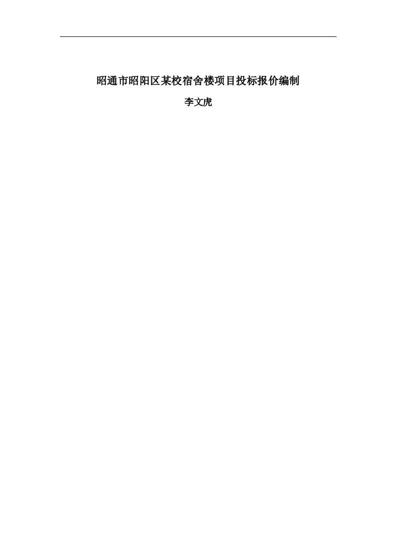昭通市昭阳区某校宿舍楼项目投标报价编制李文虎摘要本次的选题是昭通市昭阳区某校宿舍楼项目投标报价编制,该工程建筑面积为11562.11m,为框架结构,建筑高度为23.1米,无地下室,地上建筑为六层,共有宿舍248间,1488个床位:投标报价编制是在施工图设计完成后,根据施工图纸运用广联达BIM土建算量软件GCL2013和广联达BIM钢筋算量软件GG2013计算相应的工程量,再运用广联达计价软件GBQ4.0根据相应地区工程量清单、工程消耗量定额套项、套价,形成一份由人工费、材料费、机械费、管理费及利润组成的土建工程投标预算报价的经济性文件。关键词:投标报价:广联达:工程量清单:宿舍楼项目AbstractThis time,my topic is to prepare the bidding quotation for a dormitorybuilding project in a school in Zhaoyang District of Zhaotong City.Theproject has a building area of 1,562.11 m',a frame structure,a buildingheight of 23.1 meters,no basement,six floors above the ground,248dormitories and 1,488 beds.After the construction drawing design iscompleted,the bid quotation is prepared by using GCL2013 and GGJ2013 tocalculate the corresponding quantities according to the constructiondrawings.Then GBQ4.0 is used to form an economic document of the bidbudget quotation for civil engineering consisting of labor cost,materialcost,machinery cost,management fee and profit according to the bill ofquantities,project consumption quota set item and set price of thecorresponding regions.Key words:tender offer,Glodon,bill of quantities,Dormitorybuilding project