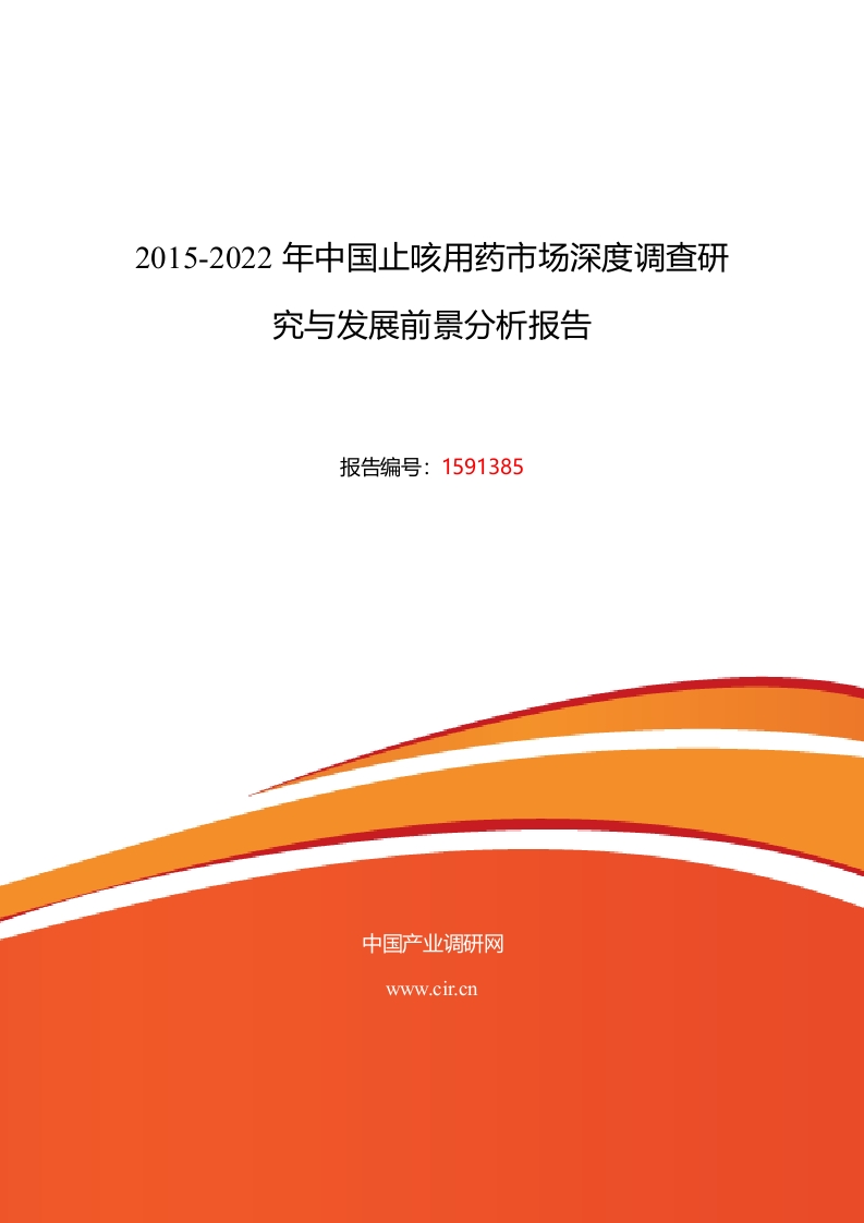 2015-2022年中国止咳用药市场深度调查研究与发展前景分析报告报告编号:1591385中国产业调研网www.cir.cn中国产业调研网Cir.cn2015-2022年中国止咳用药市场深度调查研究与发展前景分析报告行业市场研究属于企业战略研究范畴,作为当前应用最为广泛的咨询服务,其研究成果以报告形式呈现,通常包含以下内容:行业政策法规投资机会分析重点企业分析市场规模分析行业宏观背景行业研究报告市场供需状况发展前景趋势产业竞争格局行业发展现状一份专业的行业研究报告,注重指导企业或投资者了解该行业整体发展态势及经济运行状况,旨在为企业或投资者提供方向性的思路和参考。一份有价值的行业研究报告,可以完成对行业系统、完整的调研分析工作,使决策者在阅读完行业研究报告后,能够清楚地了解该行业市场现状和发展前景趋势,确保了决策方向的正确性和科学性。中国产业调研网Cir.c基于多年来对客户需求的深入了解,全面系统地研究了该行业市场现状及发展前景,注重信息的时效性,从而更好地把握市场变化和行业发展趋势。网上阅读:htp:www.cir..cn/R_YiYaoBaoJian/8s/ZhiKeYong YaoShiChangQianJingFenXiYuCe..html中因产业调研网Cir.cn2015-2022年中因止咳用药市场深度调查研究与发展前景分析报告一、基本信息报告名称:2015-2022年中国止咳用药市场深度调查研究与发展前景分析报告报告编号:1591385·咨询时,请说明此编号。优惠价:¥6480元可开具增值税专用发票网上阅读:iYuCe.html温馨提示:如需英文、日文等其他语言版本,请与我们联系。二、内容介绍咳嗽本身不是一种独立的疾病,而是一种清除呼吸道异物的防御性反应。常有咳嗽症状的疾病有感冒、支气管炎、过敏、肺炎、胸膜炎、肺结核、肺心病、肺癌等等。轻微的咳嗽,对身体无妨,可对应治疗,不必用止咳药。治疗咳嗽的药物根据不同的作用可以分为镇咳药和止咳药两种。通过抑制大脑中的咳嗽中枢治疗咳嗽,一般叫做镇咳药物。止咳药主要是指通过保护咽喉黏膜止咳的药物。据国家卫生部门统计,我国每年有近3亿人感染呼吸系统疾病,其中咳嗽患者多达5千多万人。同时,经济越是发达的地区,呼吸系统疾病的发病率越高。因此,止咳类产品拥有庞大的消费人群,市场前景广阔。经过数十年的市场培育,止咳药市场己经成长为一个较为成熟的市场,在各大药房销售的止咳产品不下40余种,价格有高有低,基本能够满足消费者不同层次的需求。中国产业调研网发布的2015-2022年中国止咳用药市场深度调查研究与发展前景分析报告认为,我国共有19405万城乡居民因哮喘、支气管炎、结核病和感冒引起咳嗽的症状。按12.6亿(第五次全国人口普查数据)人口计算,我国城乡居民咳嗽患病率为1536%。据了解,我国止咳化痰用药市场现有规模约为60亿元,与我国止咳药理论市场容量之间还有较大的差距,止咳药零售市场还有较大的增长空间。《2015-2022年中国止咳用药市场深度调查研究与发展前景分析报告》对止咳用药市场的分析由大入小,从宏观到微观,以数据为基础,深入的分析了止咳用药行业在市场中的定位、止咳用药行业发展现状、止咳用药市场动态、止咳用药重点企业经营状况、止咳用药相关政策以及止咳用药产业链影响等。网上阅读:htp:www.cir.cn/R_YiYaoBaoJian/8S/ZhiKeYong YaoShiChangQianJingFenXiYuCe.html