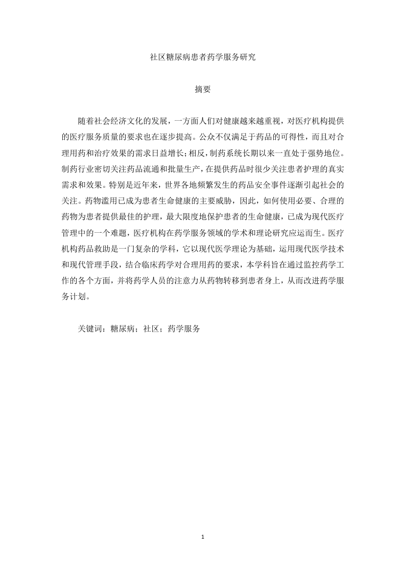 社区糖尿病患者药学服务研究摘要随着社会经济文化的发展,一方面人们对健康越来越重视,对医疗机构提供的医疗服务质量的要求也在逐步提高。公众不仅满足于药品的可得性,而且对合理用药和治疗效果的需求日益增长:相反,制药系统长期以来一直处于强势地位。制药行业密切关注药品流通和批量生产,在提供药品时很少关注患者护理的真实需求和效果。特别是近年来,世界各地频繁发生的药品安全事件逐渐引起社会的关注。药物滥用已成为患者生命健康的主要威胁,因此,如何使用必要、合理的药物为患者提供最佳的护理,最大限度地保护患者的生命健康,已成为现代医疗管理中的一个难题,医疗机构在药学服务领域的学术和理论研究应运而生。医疗机构药品救助是一门复杂的学科,它以现代医学理论为基础,运用现代医学技术和现代管理手段,结合临床药学对合理用药的要求,本学科旨在通过监控药学工作的各个方面,并将药学人员的注意力从药物转移到患者身上,从而改进药学服务计划。关键词:糖尿病:社区:药学服务引言临床药学是一个以应用为导向的综合性制药行业,它以患者为中心,以高效、安全、经济、智能的方式为患者探索和提供优质的药物,临床药学的主要任务是最大限度地发挥药物的临床疗效,确保患者的安全。临床药学是现代药学与临床医学的结合,是医学实践和社会发展的必然结果。随着临床实践的发展,她逐渐从一个方向关注体外药物的质量,如理化性质、成分和杂质、最终目标患者等。临床药学的研究领域主要包括药代动力学、药代动力学、生物制药、临床药理学等。医院医疗是一个涉及医疗机构用药的综合性药物保险过程,其核心是患者、临床药学和合理用药。这不仅包括药剂师和药剂师,他们利用专业药学知识参与和指导安全、智能、高效和经济的临床用药,也是药物管理、药学和制药技术的应用和研究。随着“临床药学”和“药学服务”理念在我国的逐步普及,许多医院开始全面调整医院药房整体活动的重点和方向,调整药学服务的结构。例如,在北京宣武医院,医院的药品配送服务已由封闭式窗口改为宽敞的开放式柜台,从而缩短了药师与患者之间的距离:为改善药房环境,一些医院药房设立柜台或咨询中心,合理用药:部分医院新药房布局更贴心,服务更灵活,等待和接收时间更短:为了提高服务质量,一些医院实施了药品注册错误报告制度,加强了药师处方检查制度,建立了文明服务标准。制定人才培养常态化制度和规划,与定点教育机构或学院,特别是高校建立长期合作关系,发挥医院实训基地优势,接受人才,利用大学研究成果实现人才循环。同时,派遣优秀员工出差,了解海外医疗机构在各自领域的成就和实践经验,根据我国现有医疗体系和医疗机构的特点进行优化和完善。1糖尿病药学服务糖尿病是慢性高血糖引起的代谢紊乱。持续的高血糖和长期的新陈代谢紊乱可能导致器官衰竭、功能障碍和衰竭。如今,糖尿病的主要治疗原则是控制血糖,推迟或避免并发症。药物的科学和理性使用是有效控制血糖的关键。然而,由于并发症、多样性、长时间的治疗和昂贵的糖尿病,患者对药物的承诺不足,这影响了药物治疗的效果。如何改善病人对治疗的承诺不仅是医生的迫切问题,也是临床药剂师必须研究的内容。药学服务是一项综合性服务,主要通过优质的服务为患者提供科学的用药建议,以提高患者对治疗的依从性。近年来,糖尿病的发病率呈上升趋势。这是一种终生的慢性病。临床治疗和非药物干预是主要因素。药学服务与药物治疗相结合,可以提高临床反应,改善预后。由于疾病的长期演变或疾病控制不力,一些患者不再依赖现有的低血糖药物,而是寻找有助于疾病发展的健康产品或其他商业产品。一些病人不知道长期高血糖的危害,只有在病情严重时才去医院。对于上述长期患者,临床药剂师应告知他们疾病的持续治疗以及是否应继续用药,并详细描述用药的类型、机制和副作用。常用药物的作用。低血糖药物、新型低血糖药物的使用、评价药物疗效和安全性的指标、不同作用机制药物组合的可能性、作用机制相同的药物之间的差异、口服低血糖药物与胰岛素之间的不同制剂,如何正确地将药物保存在不同的状态(如非活性和活性胰岛素制剂)、潜在的药物问题以及治疗措施、指标和观察时间。其目的是确保药物的长期安全性和有效性。作为一名临床药剂师,除了解释病人使用的药物外,他还必须教病人如何在不受外部因素影响的情况下评估药物的有效性和安全性。糖尿病患者通常情况复杂,难以联合多种药物。除了低血糖,糖尿病患者还会出现各种并发症,如低血压、血脂降低、尿酸水平降低和抗血小板治疗。因此,经常有许多组合药物。随着药物种类的增多,出现不良反应和相互作用的可能性增加,这实际上增加了药物选择和治疗的复杂性。其次,糖尿病患者多为中老年人。他们往往不按照医生规定的治疗方案服药,甚至自行停药。最后,糖尿病护理的概念很薄弱。一些患者通常无法控制他们的血糖。去医院是一个简单的过程。他们总是由家人开处方,没有对糖尿病进行治疗或评估,这会加速疾病的进展。这有两个原因。在医院,由于临床工作的不断改进和医务人员的短缺,医生没有花太多时间向患者解释病情和