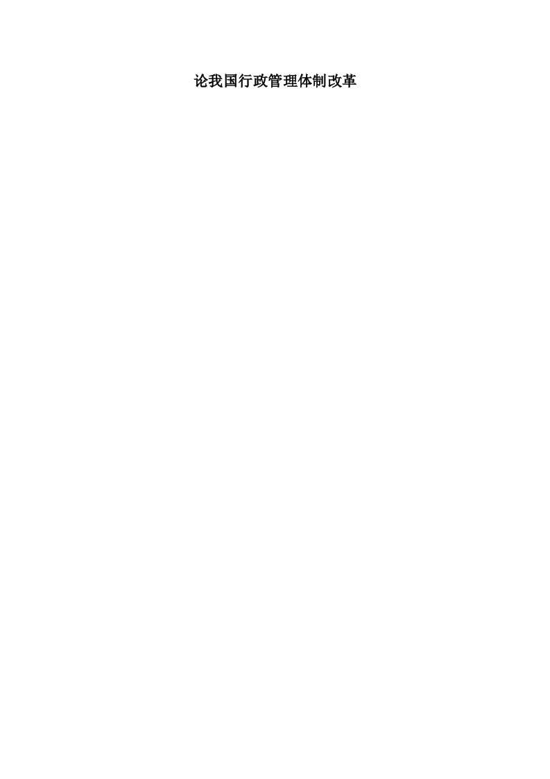 论我国行政管理体制改革摘要改革开放以来,我国先后进行了五次大规模的行政管理体制改革,取得了巨大的成效。但随着改革开放事业的进一步深入,我国行政管理体制面临着新的外呢体和挑战。因此,本文首先回顾和总结我国前五次行政管理体制改革的历程和成效,并进一步探讨我国深化行政管理体制改革的必要性和紧迫性,分析存在的问题并提出相关的政策建议,为我国行政管理体制的改革提供理论依据和决策依据。关键词:行政管理体制改革深化目录一、我国行政管理体制改革现状.5(一)我国行政管理体制改革历程5(二)我国行政管理体制改革取得的巨大成效…5二、深化我国行政管理体制改革的必要性和紧迫性,(一)是全面建设小康社会的需要.(二)是构建社会注意和谐社会的需要6(三)是促进社会经济发展的迫切要求6(四)是继续推进改革开放事业的迫切要求…三、我国行政管理体制存在的问题和面临的挑战.....7(一)机构臃肿、人浮于事、国家财政压力大7(三)政府职能转变不到位.7四、我国行政管理体制改革的指导思想、基本原则和总体要求..8(一)深化我国行政管理体制改革的指导思想.8(一)深化我国行政管理体制改革的基本原则.8(三)深化我国行政管理体制改革的总体要求…8五、深化我国行政管理体制改革的政策建议9(一)一切从实际出发调整行政管理体制改革战略(二)进一步深化行政管理部门改革…9(四)加强行政部门依法行政和制度建设.9结论.11致谢参考文献
