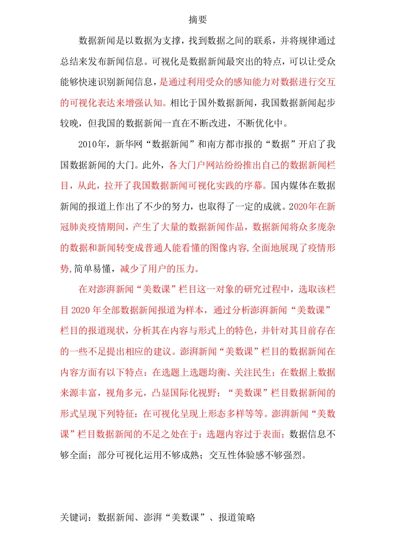 首页毕业论文新闻学10290-浅析数据新闻的报道策略以澎湃美数课为例