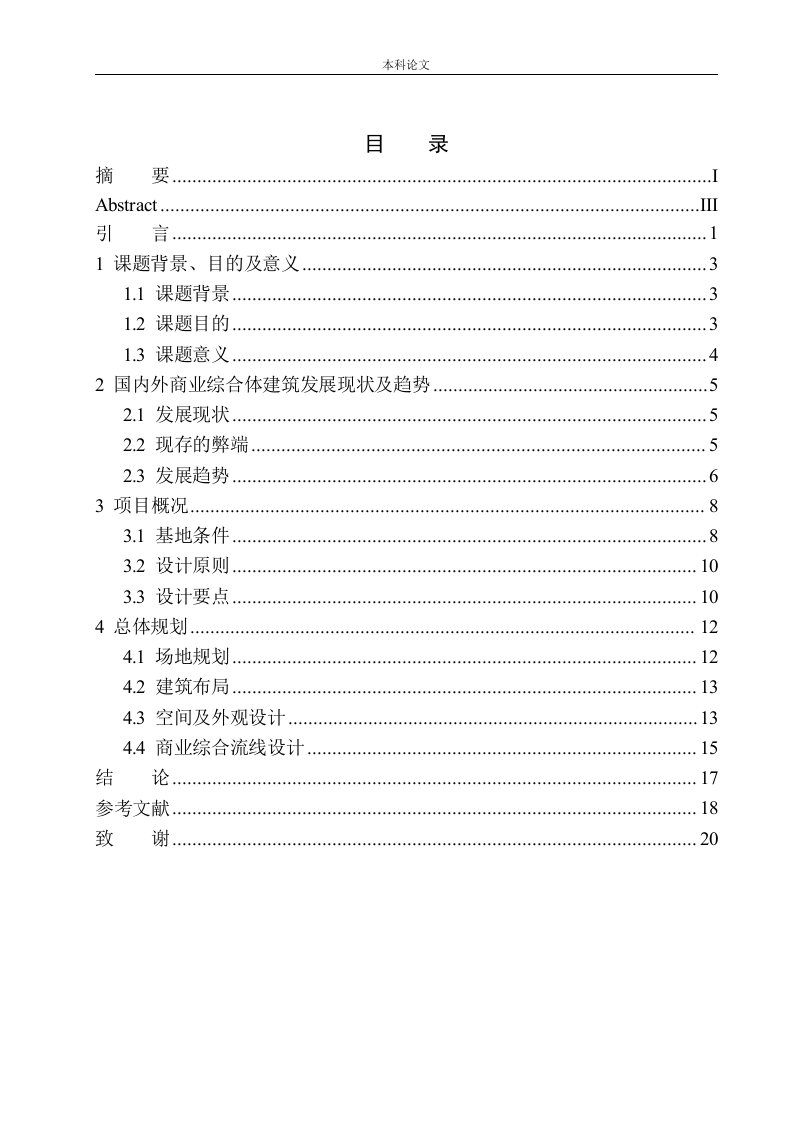 本科论文目录摘要Abstract....引言1课题背景、目的及意义1.1课题背景31.2课题目的…1.3课题意义42国内外商业综合体建筑发展现状及趋势2.1发展现状2.2现存的弊端52.3发展趋势444444443项目概况…83.1基地条件3.2设计原则103.3设计要点10124.1场地规划124.2建筑布局44444134.3空间及外观设计134.4商业综合流线设计15结论17参考文献18致20本科论文摘要近几年经济格局骤变,电商对实体行业造成了不小的冲击,人们对实体消费体系的要求也随之提高。消费结构发生了很大的变化,但是人们对于商业综合体的需求不减反增,因为和朋友聚餐、一起购物的真实感和体验感是电商无法替代的。而这些消费行为推动了商业综合体的发展,顾客的商业行为不再满足单纯的购物、逛街等活动,而是餐饮、居住、购物、娱乐、休闲、办公为一体的一站式体验。现代的商业综合体其功能、建筑形态及规模结构等都超出了过去的设计水平,在客户要求提高下,综合体的设计变得更多种多样。在如今人便捷购物高效的需求下,商业综合体还要拥有酒店,办公,购物等附加功能已满足快节奏现代生活,单一的购物体验已经无法满足人们新时代的购物行为。本文将重点研究商业综合体建筑的建筑布局、道路规划、活动场地、建筑功能、流线和建筑空间等方面阐述商业综合体建筑的设计特殊之处。由于该商业综合体需要服务人群多样、需求多样等特殊原因,商业综合体项目的场地设计与一些常规的项目相比,有一些不同,对多功能、高效率的要求较高,对细节设计的要求更为严格。因此要综合考虑,合理规划,从人的实际需求出发进行全面设计。需要考虑各种年龄、各种职业的人群不同需求,需要合理分配功能分区,合理分配娱乐、饮食、购物、办公、酒店的区块。解放东路商圈写字楼众多,白领众多,需要考虑到白领的生活节奏,可以在综合体中设置吸引年轻人游玩的区域增加综合体的流量:网吧、酒吧。为城市塑造了全新的建筑景观,激活城市中该区域的活力,也通过那些更加完善、创新的功能,为人们创造了新的休闲、购物、生活空间。商业综合体有利于树立城市新的形象。建筑布局需要考虑杭州解放东路周边的建筑的形体:杭州大剧院、杭州洲际酒店。在符合城市肌理的条件下做出创新。关键词:经济全球化:商业综合体:消费模式:人性化本科论文AbstractIn recent years,with the rapid change of economic pattern,e-commerce hascaused a great impact on the real industry,and people's requirements for the realconsumption system have also increased.Consumption structure has changed a lot,but people's demand for commercial complex has increased instead of decreasing,because the sense of reality and experience of having dinner with friends andshopping together is irreplaceable for e-commerce.These consumption behaviorspromote the development of commercial complex.Customers'business behaviorsno longer meet the simple shopping,shopping and other activities,but a one-stopexperience integrating catering,living,shopping,entertainment,leisure and office.The function,architectural form and scale structure of modern commercialcomplex exceed the past design level.With the improvement of customers'requirements,the design of complex becomes more diverse.Under the demand ofconvenient shopping and high efficiency,the commercial complex should alsohave additional functions such as hotel,office,shopping,which have met thefast-paced modern life.A single shopping experience has been unable to meetpeople's shopping behavior in the new era.This paper will focus on the architectural layout,road planning,activity site,architectural function,streamline and architectural space of the commercialcomplex building to elaborate the design particularity.Due to the special reasonssuch as the diversity of service population and demand of the commercial complex,the site design of the commercial complex project is different from someconventional projects,with higher requirements for multi-function and highefficiency,and more stringent requirements for detail design.Therefore,comprehensive consideration,reasonable planning and comprehensive designshould be carried out from the actual needs of people.The architectural layout needs to consider the shape of the buildings aroundthe East Jiefang Road in Hangzhou:Hangzhou Grand Theatre,Hangzhouintercontinental hotel.Make innovation under the condition of meeting the urbantexture.The site design needs to consider the different needs of people of differentages and occupations,allocate functional areas reasonably,and allocate blocks ofentertainment,diet,shopping,office and hotel reasonably.Jiefang East Road