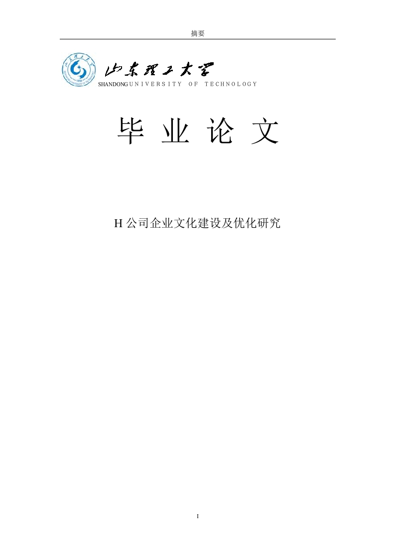 摘要SHANDONGUNIVERSITY OF TECHNOLOGY毕业论文H公司企业文化建设及优化研究摘要摘要20世纪70-80年代开始了与企业文化建设相关的研究。在新发展环境下,文化对于企业国际竞争优势的获取以及持续稳定发展而言有着越来越重要的作用,许多企业在发展过程中逐渐将文化建设工作是为企业发展重点,积极吸收借鉴国内外企业与文化建设相关的经验,取得了显著的文化建设效果。从公司开始建立时,与企业日常管理运营相关的公司文化便随之诞生。随着时间的演变,公司文化随着企业的发展而逐渐积累,并在企业员工之间进行传承与创新,最终成为企业发展的核心文化。企业文化能够对企业在市场中的核心竞争力水平产生重要影响,因为企业在本专业方面的专业以及未来的发展程度都能够通过企业文化表现出来。本文在分析企业文化建设工作过程中,以H公司的文化建设工作作为研究案例,从物质、行为、制度与精神等不同角度对该公司的文化建设工作进行了分析,并指出该公司存在的问题,例如在文化建设工作方面存在宣传力度不足、相关工作不到位并且流于形式、缺乏相关的完善配套措施等。并在结合相关理论经验与该公司文化建设实际情况的基础上,提出了改善该企业文化建设工作的对策建议,例如优化相关制度建设、增大宣传力度以及加强对企业员工的人文关怀等。关键词:文化建设,企业文化,发展对策AbstractAbstractFrom 1970 to 1980,the research of corporate culture construction began.Cultureplays an increasingly important role in international competition and development.Many enterprises have gradually formed culture in the process of development,andhave made remarkable achievements in cultural construction.Since the establishmentof foreign companies,the daily management of enterprises and related corporateculture,in the Enlightenment of the development of the times,corporate culture withthe development of enterprises and the transfer and innovation between employeesand gradually develop.As an important part of organizational culture,automobileenterprise culture has an important impact on the core competitiveness of the marketdue to its specialization and development level.This paper analyzes the formation ofenterprise culture from four aspects of material culture,behavior culture,systemculture and spiritual culture,points out the problems existing in the construction ofenterprise culture,and puts forward the Countermeasures for the construction ofenterprise culture on the basis of summarizing the relevant theories.This paperintroduces the experience and reality of enterprise culture construction,and putsforward some suggestions for improvement of enterprise culture construction,such asoptimizing system connection,improving public relations,caring for employees,etc.Keywords:corporate culture,Cultural construction,Development strategy