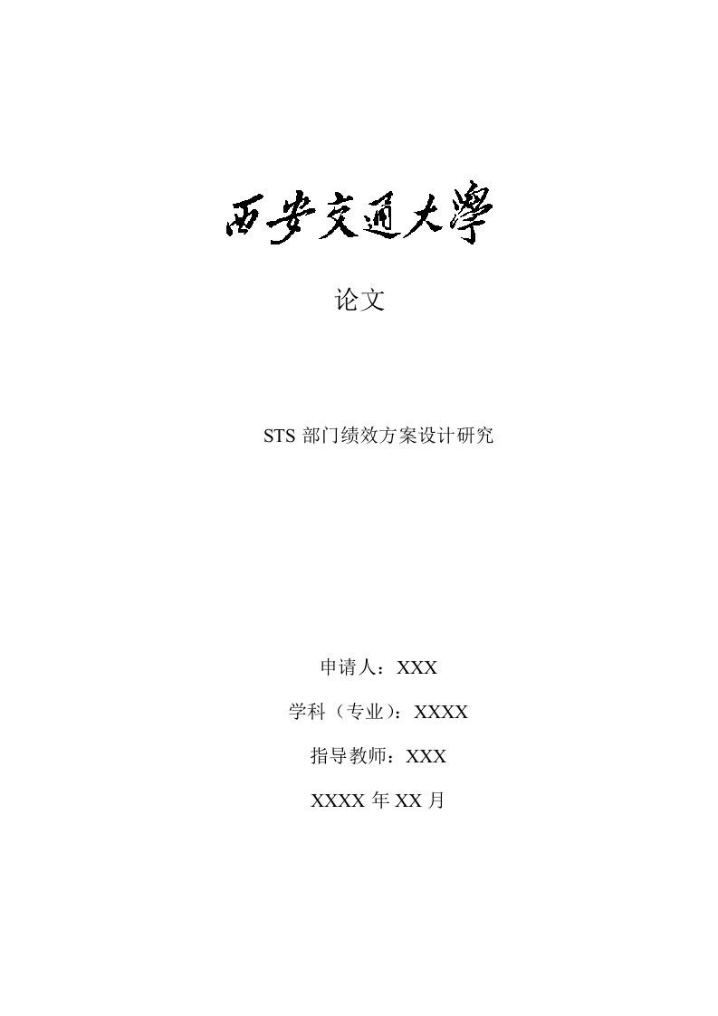 论文STS部门绩效方案设计研究申请人:XXX学科(专业):XXXX指导教师:XXXXXXX年XX月网络教育学院毕业设计(论文)任务书专业班级层次姓名学号一、毕业设计(论文)题目二、毕业设计(论文)工作自年月日起至年月日止三、毕业设计(论文)基本要求:指导教师: