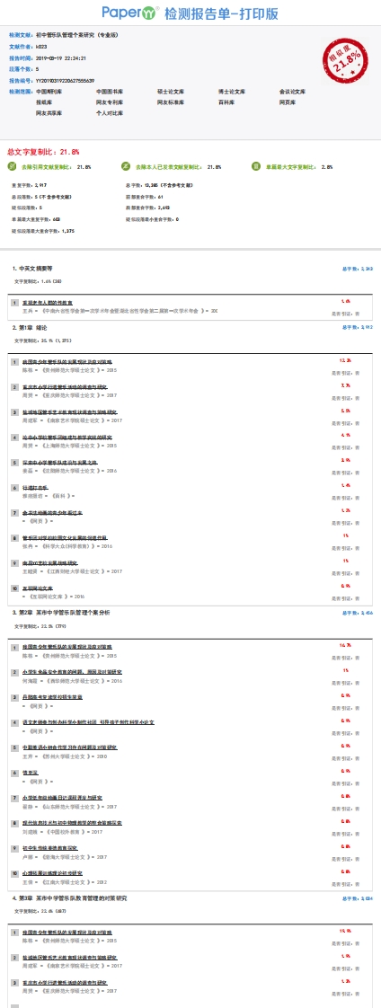 初中管乐队管理个案研究-PaperYY论文检测报告-专业版-20190319