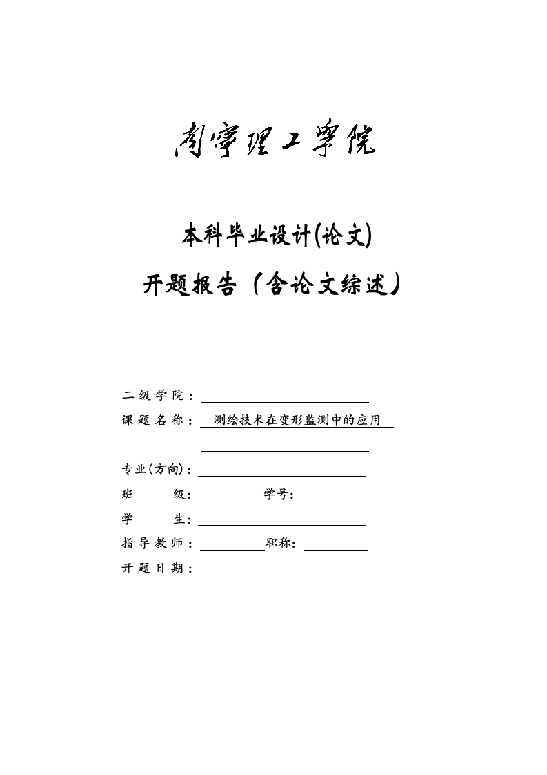 本科毕业设计(论文)开题报告(会论文综述)二级学院:课题名称:测绘技术在变形监测中的应用专业(方向):班级:学号:学生:指导教师:职称:开题日期:毕业设计(论文)选题的依据沉降观测是一种通过测量安置在建筑物上的观测点和水准点的高程来确定被测物地面沉降情况的工作,一般采用水准测量的方法。在各种工程施工的过程中往往都伴随着沉降观测,一直持续到工程结束。随着建筑行业的发展,原本空荡的地面上也兴起了一座又一座高楼大厦,农村变成钢铁丛林,黄海上横卧的青岛胶州湾大桥,长江上竖立的三峡大坝,各种庞大而雄伟的工程日益增多,但随之而来的也是许多的问题。工程建筑物的兴建,为地面带来了沉重的压力,这就必然会引起地面的沉降以及地基岩层的各种形变。为了守护人们辛苦的成果以及保护人民的生命健康和财产安全,延长地面建筑物的使用寿命和维持建筑物的稳定性是必须的,建筑物沉降观测应运而生。减小因地面沉降而造成的破坏和影响,沉降观测应通过测量安置在建筑物上的观测点和水准点的高程来确定被测物地面沉降情况,沉降观测需要按照施工的规范要求和具体的工程进度进行观测和记录,直至竣工。参考文献:[1]林新吴,王卫玲.数字化测绘在建筑工程测量中的应用分析[J].绿色环保建材,2021,(10):145-146.[2]程建峰.测绘新技术在国土三调以及国土管理中的应用解析[J].农业与技术,2021,41(19):178-180.[3]刘岩,张康宇,姜旭梅.测绘新技术在房地产测绘中的应用探析[J].治金管理,2021,(19):133-134.[4]蒋骏.论现代测绘技术在城市地下施工变形监测中的应用[J].城市建筑,2019,16(12):141-142.[5]刘湘媛,陈伟.现代测绘技术在城市地下施工变形监测中的应用[J].资源信息与工程,2019,34(01):115-116+118.[6]张文春,徐正元,张理想,马金峰.现代测绘技术在地铁隧道变形监测中的应用研究[J].吉林建筑大学学报,2018,35(02):25-29.[7]张振辉.应用现代测绘技术的公路隧道进口边坡变形监测技术研究[J].科技创新导报,2010,(24):99-10二、设计或研究内容、预期目标、方法和步骤及拟解决的关键问题随着现代测量技术的不断发展,各种变形监测的手段的进步,也慢慢形成了完整的监测体系。以TK、三维激光以及各种遥感无人机为代表的高新科技测量技术,渐渐地取代一些传统测量手段。一些较早出现的观测监测技术(例如测斜仪、分层沉降仪、光纤传感器等)为了能够追赶上时代,也逐渐往数字化、电子化的方向转变。本篇以牛栏头山村房屋宅基地建设工程沉降观测为工程案例,讲解沉降项目概况、作业前的准备、仪器的使用等方面,了解作业步骤和观测要求,计算并整理工程数据,分析工程数据并得出折线图、累计沉降量统计表等内业分析成果。最后再该次工程进行总结,分析沉降的原因、各种技术上的问题,并从牛栏头山村房屋宅基地建设工程沉降观测中得出变形监测的一些优势以及对工程的帮助。大纲:引言1沉降观测1.1沉降监测介绍1.1.1概况1.1.2沉降监测目的1.2地面沉降1.2.1地面沉降介绍1.2.2地面沉降原因1.3地面沉降危害及监测方法1.3.1地面沉降的危害1.3.2地面沉降监测方法2牛栏头村的沉降观测2.1工程概况2.1.1项目简介2.1.2工程准备观2.1.3仪器使用2.2沉降监测步骤2.2.1建立水准控制网2.2.2建立固定的观测路线2.2.3沉降观测