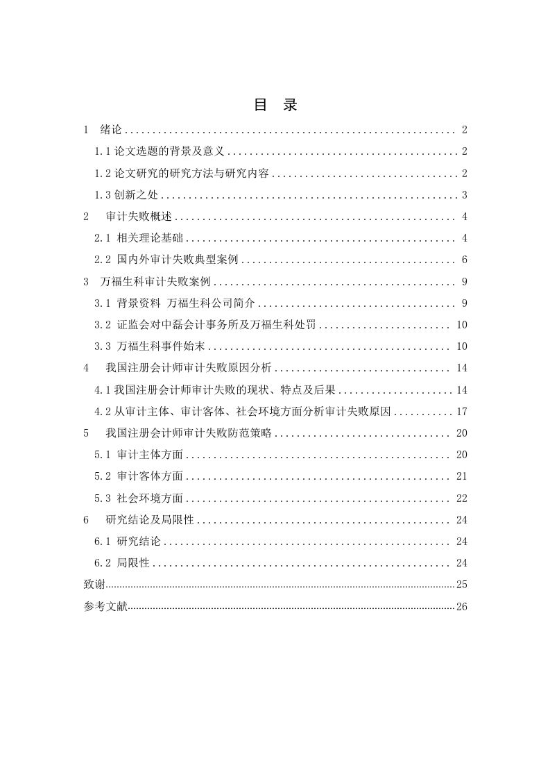 目录21.1论文选题的背景及意义...1.2论文研究的研究方法与研究内容232审计失败概述442.2国内外审计失败典型案例.…63万福生科审计失败案例.·93.1背景资料万福生科公司简介.....10104.1我国注册会计师审计失败的现状、特点及后果....144.2从审计主体、审计客体、社会环境方面分析审计失败原因...175我国注册会计师审计失败防范策略20205.2审计客体方面....215.3社会环境方面...226研究结论及局限性..246.1研究结论246.2局限性...24参考文献…注册会计师审计失败案例分析注册会计师审计失败案例分析摘要:随者中国改革开放不断的发展和深入,为了更好适应新经济形势下经济发展和企业转型需要,企业的审计项目也越来越频繁,所以在现如今资本快速发展的大背景下,申请注册会计师也显得尤其重要,并且会计审计报告在资本市场中也占据重要地位。但时有发生的审计失败事件也引起了人们对注册会计师出具的审计报告失去信任。如万福生科、科龙电器、新大地、绿大地、蓝田股份公司等都发生过审计失败的情况,政府相关部门对此做出了严厉的惩罚,同时这一现象也遭到广大群众的严厉指责。同时也把注册会计师的职业危机推向了风口浪尖,本文通过对审计失败案例的分析,从审计失败原因出发,随后从不同角度分析,研究出降低审计失败的对策,对促进我国资本市场的健康发展有巨大的推动作用。关键词:注册会计师:审计失败:审计主体:审计客体:社会环境Case analysis on the failure of the CPA auditAbstract:With the further development of China's reform and opening up,in order to adapt to thetransformation of enterprises and economic development under the new economic situation,CPA industry isplaying an increasingly significant role in capital market in China.The development of capital market makespeople increase demand for the audit and pay more attention to the audit report.However,a recent spate of Auditfailure events caused an enormous breakdown of trust in CPA.For example,Wanfu Biotechnology,XindadiBiotechnology,Green Land Biotechnology and other audit failures exposure to the public,which confronted tosevere punishment and censure from China Securities Regulatory Commission,government departments and thepublic.We have to put emphasis on this kind of issue and avoid the similar situation happen again.This paper analyzes the severe situation of audit failure and the potential reasons though the cases from home andabroad in the recent years.At the same time,making a detail analysis of Wanfu Biotechnology,build thetheoretical framework of audit failure.To improve the market regulation and corporate governance,promote thedevelopment of the whole industry of CPA has,prevent audit failure in the future has important practical value.Keywords:CPA.Audit failure,Audit subject.Audit object,social environment第1页共26页注册会计师审计失败案例分析1绪论1.1论文选题的背景及意义1.1.1选题背景现如今,我国股市IP0的不断扩容给中国股市注入了新的血液,也对中国经济转型和发展有着非凡的意义,在此历史背景下,会计信息的作用显得尤为突出。在中国资本市场大多数投资者都会根据会计信息来选择自己的投资标的:注册会计师审计则是一防止虚假会计信息的最后一道有效防线,更是资本市场正常有序运作重要组成部分之一。近年来我国上市公司时有发生审计失败事件,从2001年银广厦财务丑闻曝光后,相继出现了万福生科、新大地、科龙电器、绿大地、和蓝田股份等审计失败案例,不断发生的审计失败案例破坏我国资本市场正常运行,审计失败不仅使投资者由于不实的财务信息从而导致投资决策失误,这样就造成了投资者对注册会计师产生不信任。1.1.2选题意义审计报告被人们怀疑是注册会计师别有用心来忽悠人的一摞废纸。然而审计失败发生并不是由于某一个原因造成的,而是多种因素的累积才可能引发产生,由于参与审计的相关企业的管理者是独立进行审计工作的,加上被审核的各大公司和股东们都想获得利益最大化,这些因素与交错复杂的审计环境相结合,不可避免的会造成审计失败等一系类现象的出现。此外,现在的市场经济法律、法规也不是很健全和完善,注册会计师在审计过程也会受到政府无形干预,这些因素都会影响审计报告的最终结果,影响其真实性,所以当审计失败此类事件发生的时候,人们会对注册会计师的能力、会计信息等有所怀疑,并且也会对市场经济投资秩序的稳定和发展造成不利,从而促进中国资本市场健康发展和繁荣。1.2论文研究方法和研究内容1.2.1研究方法(1)案例分析法深入剖析国内外审计失败的典型案例,然后找出导致审计失败的各种原因,最后总结经第2页共26页