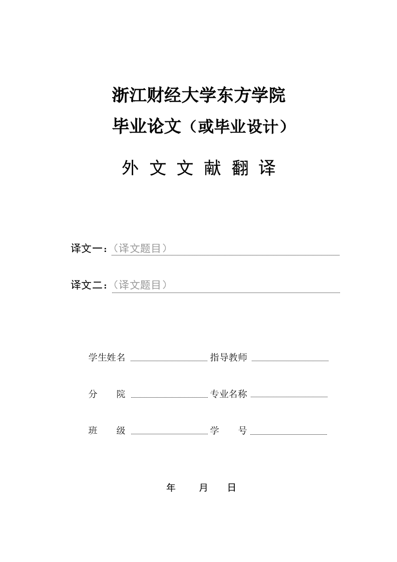 浙江财经大学东方学院毕业论文(或毕业设计)外文文献翻译译文一:(译文题目)译文二:(译文题目)学生姓名指导教师分院专业名称班级学号年月