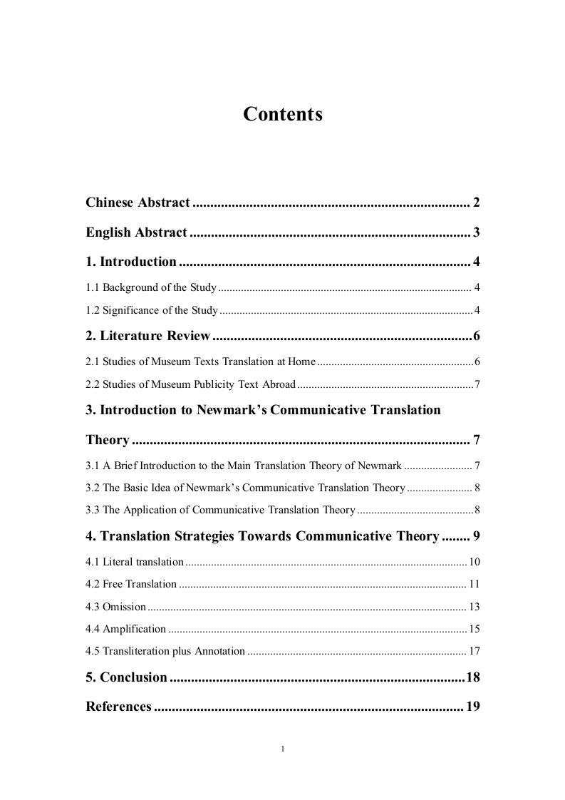 ContentsChinese Abstract....2English Abstract.…31.Introduction..........1.1 Background of the Study................41.2 Significance of the Study...................2.Literature Review….62.1 Studies of Museum Texts Translation at Home....62.2 Studies of Museum Publicity Text Abroad.3.Introduction to Newmark's Communicative TranslationV...................................................................3.1 A Brief Introduction to the Main Translation Theory of Newmark........................73.2 The Basic Idea of Newmark's Communicative Translation Theory.......................83.3 The Application of Communicative Translation Theory.............................84.Translation Strategies Towards Communicative Theory........94.1 Literal translation.104.2 Free Translation..4.4 Amplification......15References..........交际翻译理论视角下的博物馆展览文本研究以中国闽台缘博物馆为例摘要作为“海上丝绸之路的起点”,泉州可谓是一座文化古城,这里古迹甚多、风景优美、文化繁荣发展,中西文化在这里碰撞交流。泉州的中国闽台缘博物馆是国内首座国家级对台专题博物馆,每年都吸引了许多国内外游客。博物馆展览文本作为西方人读懂中国文物的重要渠道,其译文是否高质有效对促进文化交流起重要作用。但是,由于我国博物馆展览文本翻译起步相对较晚,翻译文本中还存在许多不足之处,中国闽台缘博物馆的展览文本翻译中也存在很多问题。本论文将在彼得·纽马克的交际翻译理论的指导下,对中国闽台缘博物馆的展览文本翻译进行分析,从而通过分析直译、意译、省译、增译和音译加注释在中国闽台缘博物馆展览文本翻译中的应用来探索改善博物馆展览文本翻译的策略。关键词:中国闽台缘博物馆:交际翻译理论:翻译策略Exploration on Museum Text Translationfrom the Perspective of CommunicativeTranslation Theory-A Case Study of China Museum forFujian-Taiwan KinshipAbstractAs the starting port of the "Maritime Silk Road",Quanzhou is an ancient culturalcity with many historic sites,beautiful scenery and prosperous culture.Chinese andWestern cultures have long-term exchanges here.Located in Quanzhou,ChinaMuseum for Fujian-Taiwan Kinship is the first national level topic museum forTaiwan,and attract many domestic and foreign tourists every year.As an importantchannel for westerners to understand Chinese cultural relics,high quality andeffective translation plays an important role in promoting cultural exchange.However,there are still many deficiencies of Chinese museum translation texts,because domestic research on translation of museum exhibition texts started relativelylate.Based on Peter Newmark's Communicative Translation Theory,the author willanalyze the translation of exhibition texts in China Museum for Fujian-TaiwanKinship and explore strategies to improve the translation quality.Key words:China Museum for Fujian-Taiwan Kinship;CommunicativeTranslation Theory;translation strategies3