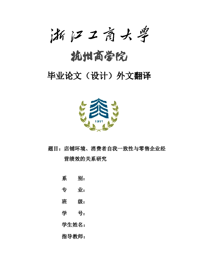 毕业论文(设计)外文翻译题目:店铺环境、消费者自我一致性与零售企业经营绩效的关系研究系专业班学学生姓名:指导教师:毕业论文:外文翻译学生姓名:定稿时间:201203-15年三月外文翻译之一The effect of brand personality and brand identification onbrand loyalty:Applying thetheory of social identification作者:CHUNG K.KIM1;DONGCHUL HAN:SEUNG-BAE PARK国籍:Korea出处:Japanese Psychological Research,2002.10,P:45-48Abstract:This study investigated the effect of brand personality on brand assetmanagement by using the concept of consumers'identification with a brand.The focuswas on one important type of high-technology product,the cellular phone.The authorsdevelop a conceptual framework to explain the effect of brand identification on brandloyalty.The important variables of this framework include the attractiveness of thebrand personality,the distinctiveness of the brand personality,the self-expressivevalue of the brand personality,positive word-of-mouth reports of the brand,and brandloyalty.The empirical results indicated that there are positive relationships betweenattractiveness,distinctiveness,and self-expressive value of brand personality.Theserelationships had a statistically significant effect on consumers'identification with abrand.Furthermore,brand identification had a direct effect on word-of-mouth reportsand an indirect effect on brand loyalty.The theoretical and managerial implications ofthe empirical results are presented,and suggestions are made regarding both thelimitations of the present study and future directions for research.Key words:brand personality,word-of-mouth reports,brand loyalty,socialidentification,self-expression.Research background and objectivesMany companies are trying to get target customers'attention by creating adistinctive brand image for their products.In the United States,promotion of GeneralMotors'Chevrolet truck emphasized the image of "Like a rock,"and that of Canon'sEOS Rebel X camera emphasized the image of independence,dynamism,andbrilliance through the tennis player Andre Agassi.These kinds of humancharacteristics associated with a brand are called"brand personality."The importance of brand personality to consumers'brand loyalty and repurchasing毕业论文:外文翻译学生姓名:抗州商常院定稿时间:2012-03-15behavior has not been widely acknowledged.Only a few researchers,such as Plummer(1985)and David Aaker(1996),have pointed out the importance of brand personality inbuilding competitive advantage and brand loyalty.In short,the issues of why and how brand personalities affect consumers'brandloyalty have not been addressed.The study reported here borrowed the methodologydeveloped by Aaker(1997)to measure some dimensions of brand personality.Thispaper presents a theoretical framework for understanding anyeffects of brand personality on brand asset management.The paper also specifiesconsumers'behaviors in respect of word-of-mouth reports about a brand,and brandloyalty.The specific research objectives of this study were as follows.First,it examinedthe existence of brand personality in the cellular phone market in Korea.Furthermore,the research showed that the self-expressive value and distinctiveness of the brandinfluence the attractiveness of a brand personality.Second,this study investigated anypossible linkage between brand and consumer through the social identification theorydeveloped in social psychology.The concept of social identification relates to aperson's sense of belonging to a certain group or organization(Bhattacharya,Rao,&Glynn,1995;Mael&Ashforth,1992).Third,this study examined the effect of brandidentification on brand loyalty and positive word-of-mouth reports about the brand.The major research subjects of our paper are as follows:1.With what kinds of brand personalities do consumers in Korea associate theircellular phones?2.How does brand personality affect brand loyalty?The latter is broken down into three parts:1.Which aspects of brand personalities are connected to a brand's attractiveness,self-expressive value,and distinctiveness?2.Does the attractiveness of brand personality positively affect the level of brandidentification?3.Does brand identification have a positive effect on the level of brand loyalty andword-of-mouth reports?This study will be of interest both to businesses and academically.In the businessworld,it is expected that the results of studies like the present one will be used todevelop strategies for corporate advertising and store design.Furthermore,it will helpour understanding of how brand personality may be used to enhance customers'self-expression and product differentiation.Academically,studies about brandpersonality have progressed to identifying dimensions of brand personality.Beyondsuch identification,this study,within the framework of social identification,examineshow brand personality affects brand loyalty.Literature review and hypothesesStudies of brand personalityHow human personality affects various aspects of consumer behavior has beenwidely studied,but studies of brand personality began only recently.Plummer(1985)studied how brand personality affects consumers'choice of a soft drink with adistinctive brand image in the United States.Aaker(1996)summarized the role of