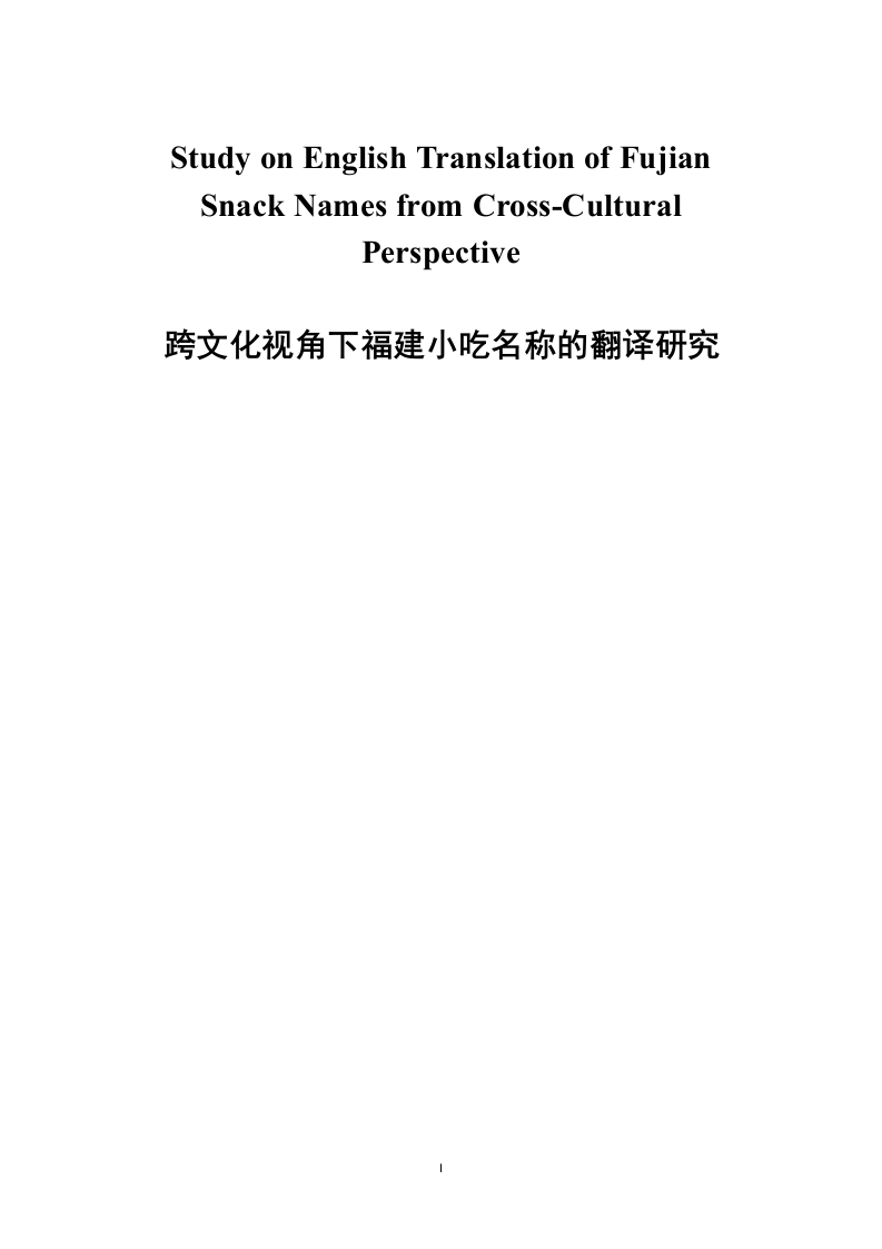 Study on English Translation of FujianSnack Names from Cross-CulturalPerspective跨文化视角下福建小吃名称的翻译研究Fujian is located in the southeastern China,Fujian becomes the famous dieteticculture circle by its superior geographical location and climate influence,which givesbirth to the one of the eight cuisines of Fujian cuisine and the Fujian snacks that isfamous at home and abroad.Fujian snacks have a long history,a wide variety,andunique taste,to stand out from all the local snacks,there are a lot of people to favoritethe Fujian snack.With the increasingly close exchanges between China and foreigncountries,more and more people come to China to invest,travel and study.In order tomake foreign friends to enjoy the delicacy food and to understand the special snackand the connotation of local culture,it is important to provide a reasonable translationfor the snacks.However,the name of Fujian snacks is rich and colorful,and some are full ofdeep cultural connotation,which bring great difficulty to the translation work.In thetranslation process,once the translation of snack name is improper that will oftenmakes foreigners and the English lover of Chinese people to puzzle.At present,thereis little research on the translation of the snack name.In order to understand thespecific situation of English translation of Fujian snack.The paper through study theFujian snack and analyze the case of the translation of Fujian snack,trying to practicein English translation of Fujian special snacks from the cross-cultural perspective,tofind out the problems of English translation and causes for English translation ofFujian snack names by collecting a large number of translation examples,aiming atthe problems of the translation of Fujian snack name,and puts forward thestandardized translation strategies,in order to improve the translation quality ofFujian snack name and provide a reference to the translation of other regional specialsnack,so that make foreign friends can understand Fujian snacks and the culture inbetter and carried forward.Key Words:Fujian snack;translation strategies;Culture Communication摘要福建位于中国东南部,其优越的地理位置以及气候的影响形成了著名的福建饮食文化圈,从而催生了全国八大菜系之一的闽菜以及闻名于海内外的福建小吃。福建小吃历史悠久,品种繁多,口味独特,在众地方小吃中脱颖而出,得到广大人民群众的喜爱。随着中外交往的日益密切,来中国投资,旅游和学习的外国人也越来越多。为了让外国人在享受美食的同时,更好地了解福建当地的特色小吃及小吃的文化内涵,最重要的是为这些小吃提供合理的翻译。然而福建小吃的名称丰富多彩,有些还充满了深厚的文化内涵,这就给翻译工作带来了很大的难度。在翻译过程中,一旦翻译不当,往往让外国人甚至是爱好英语的中国人百思不得其解。目前,以小吃名称的翻译为对象进行学术研究的还很少。面对此种现状,为进一步具体了解福建特色小吃的英译现状,本文通过对福建小吃的研究以及对福建小吃英译的案例分析,并在跨文化视角下尝试对福建特色小吃进行英译实践,通过搜集大量的翻译实例,找出福建小吃名称翻译存在的问题和造成的原因,针对福建小吃名称翻译的问题,提出相应的规范化的翻译策略,旨在提高福建小吃名称的翻译质量,并为其他地域的特色小吃翻译研究工作提供参考,从而让外国友人能更快更好地了解福建小吃以及小吃的文化并将其发扬光大。关键词:福建小吃:翻译策略:文化传播