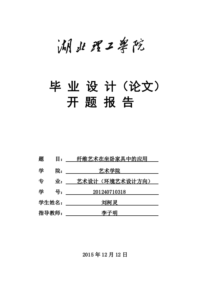 毕业设计(论文)开题报告题纤维艺术在坐卧家具中的应用学艺术学院专业艺术设计(环境艺术设计方向)学号:201240710318学生姓名:刘柯灵指导教师:李子明2015年12月12日毕业设计(论文)开趣报告1、课题来源纤维艺术原本来源于西方古老的壁毯艺术,在后期自我完善发展过程中融入了世界各国的优秀纺织文化精髓,在吸纳现代艺术观念后,掺合现代纺织技术,形成的种古老又年轻的艺术形式。这种形式影响着艺术的各个领域,其中家具领域在纤维艺术的表达方面又是彼此交错,互相影响。随着家具设计的深入发展以及人们对于现代生活的不断追求,消费者更多的是关注生活空间能够使人产生心理的认同感、归属感,能够充分营造一种丰富多样的生活氛围。相对于一般冰冷和坚硬的建筑外壳,人们更加向往大自然的质朴与恬静,内心充满着对大自然的深厚情感。因此,迫切希望能够通过室内家具体会到一种对大自然的亲近感,缩短水泥、金属、玻璃等现代建材给人带来的距离。2、研究目的和意义(1)研究目的现代纤维艺术具有无限开放性。以其特有审美来看,分为材料美、肌理美、形态美、色彩美。为了深入探索多元的纤维材料,开拓新的艺术形式,在古今纤维艺术中做到交融与演化,从而体现艺术风格种类多样性,材料种类的综合性,让大众理解关注纤维艺术。从而推动不同领域的研究。(2)研究意义:纤维艺术是具有实用功能和审美价值于一体的艺术形式,其中特定材质的运用和表现形式的多样化,使得纤维化独具平面性,立体性及空间性的诸多造型特点。而纤维材质本身所具有的物理性与化学性,又使纤维艺术作品具有御寒,保暖,防潮,吸光,隔音等功能效用。融入以上功能功效,将造福人类。现如今,各国热爱纤维艺术的教育工作者正投入研究,现已初具规模。与此同时,纤维艺术理论文化的建设和研究,也应逐步由感性到理性,由表面到纵深发展,促使纤维艺术更有深度,所以需要对现代纤维艺术独特的语言进行广泛的探索,大胆的开拓和试验,使纤维艺术呈现一种多元化的风貌。此种手段的运用,从本质上突破了传统艺术形式上材料处于隶属地位的观念束缚,这样无形之中也促进了艺术家对传统纤维艺术观念与形式认识上的深化。第1页共7页毕业设计(论文)开趣报告3、国内外研究现状和发展趋势及综述(1)国内研究现状:在中国,古时以织绣工艺为主。在诸葛雨阳与邬烈炎两位先生的《现代纤维艺术》中明确提出现代纤维艺术不管是从它的材料、工艺还是表现形式上来说,都与早期的织绣工艺有着共同的渊源关系,只是涵盖范围相对更广。现代纤维艺术的材料不仅仅局限于以往的材质,更着重于美感,讲究形,美与实用性的三者结合。随着世界科技的发展,越来越多的工艺与加工方式加入到其中,其中包括古老的壁毯技术和现代的人工合成纤维技术。从中国现阶段的纤维装饰类家具研究不难发现,中国现阶段的纤维艺术的发展在于如何修饰传统家具,使之与现代美术理念交融,做出具有我国民族特色的纤维家具。国内现代纤维艺术研究一般分为以下三个阶段。1、初期:此时由西方引进,为主要的传统壁毯形式出现,时间为20世纪中期。2、过渡发展期:完全脱离传统的壁毯形式,使纤维艺术真正成为与家具有关的一种艺术形式。且加工技艺渐渐娴熟,国际视野逐步开阔,同时国际中对于纤维艺术的合作与讨论逐渐增多,时间为20世纪末期。3、稳步上升期:上个世纪末至本世纪初,随着科技的高速发展,人们更多考虑的是一个产品对于市场的把握,追求新型材质,追求作品融入环境。其实,在我国传统家具中都不难见含有纤维艺术类的家具,在08年田自秉先生的《中国工艺美术史》中也曾记载,在古代社会较高层的生活层面更是常见。我国的古代审美观早已将艺术性与实用性结合,做出了相当一批凝结智慧结晶的家具。(2)国外研究现状:纤维艺术源自西方,并在西方各种文献和史实中都有记载。外国的当代纤维艺术家在考虑家具与纤维艺术搭配的同时,更多考虑的是文化的蜕变与人性化,注重人类使用的过程,逐渐成为一种适应人类使用的造型方式,这使国外的纤维艺术展现给人们的是精致、百家齐放的感觉。1、从包豪斯的创作作品建筑设计结合纤维艺术开始,传统的设计便开始发生改变,其设计作品中都体现了对纤维编织技术的运用。虽然在表面依靠平面设计创作,但实际上已经转变了以表现形式为创作主旨的审美标准,此变化,基本确立了材料与结构在现代纤维艺术上的地位。第2页共7页