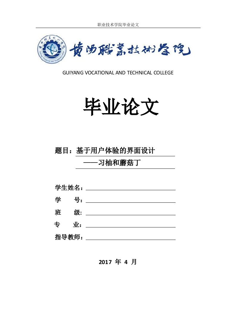 职业技术学院毕业论文GUIYANG VOCATIONAL AND TECHNICAL COLLEGE毕业论文题目:基于用户体验的界面设计习柚和蘑菇丁学生姓名:学班级:专业:指导教师:2017年4月职业技术学院毕业论文基于用户体验的界面设计一习柚和蘑菇丁摘要基于用户体验的APP界面设计是从广泛收集及调查目标用户(此次研究的用户群体是实习生)的喜好和需求的调研开始,然后综合应用各种技术手段,设计出有创意又实用的产品的过程。这个过程不是简单的元素堆砌,而是通过特定用户群体的需求以及习惯设置内容和安排布局。站在用户的角度设计产品,同时又能够让用户更好适应产品。伴随着互联网的普及,参与其中的实习生比例越来越高。根据网民规模及上网行为调查报告显示,到2017年为止,在中国已经有8958.2万名网民为实习生,实习生在工作时候的互联网渗透率高至51%,其中有67.7%的实习生明确地说对于他们来说,最受欢迎的媒体形式就是互联网。由此可见,移动端应用这股飓风已经猛烈地刮入了就业圈,实习类APP这一新兴市场更开始被不少创业者垂诞。不过,相比于国外,国内实习生移动端应用的市场起步较晚,目前还处于发展阶段,但需求带来发展空间,必然积极影响着市场。关键词:实习生:用户体验:市场:发展受限:前景职业技术学院毕业论文目录2实习类APP中国市场发展现状14关于实习生阅读应用的调研和设计14.1确定产品定位24.2设计交互原型.…24.3设计思路.24.4针对实习生应用的设计要点35实习生APP市场发展前景.....45.1优化软件内容提升用户信任度5.2巧用营销策略6致谢
