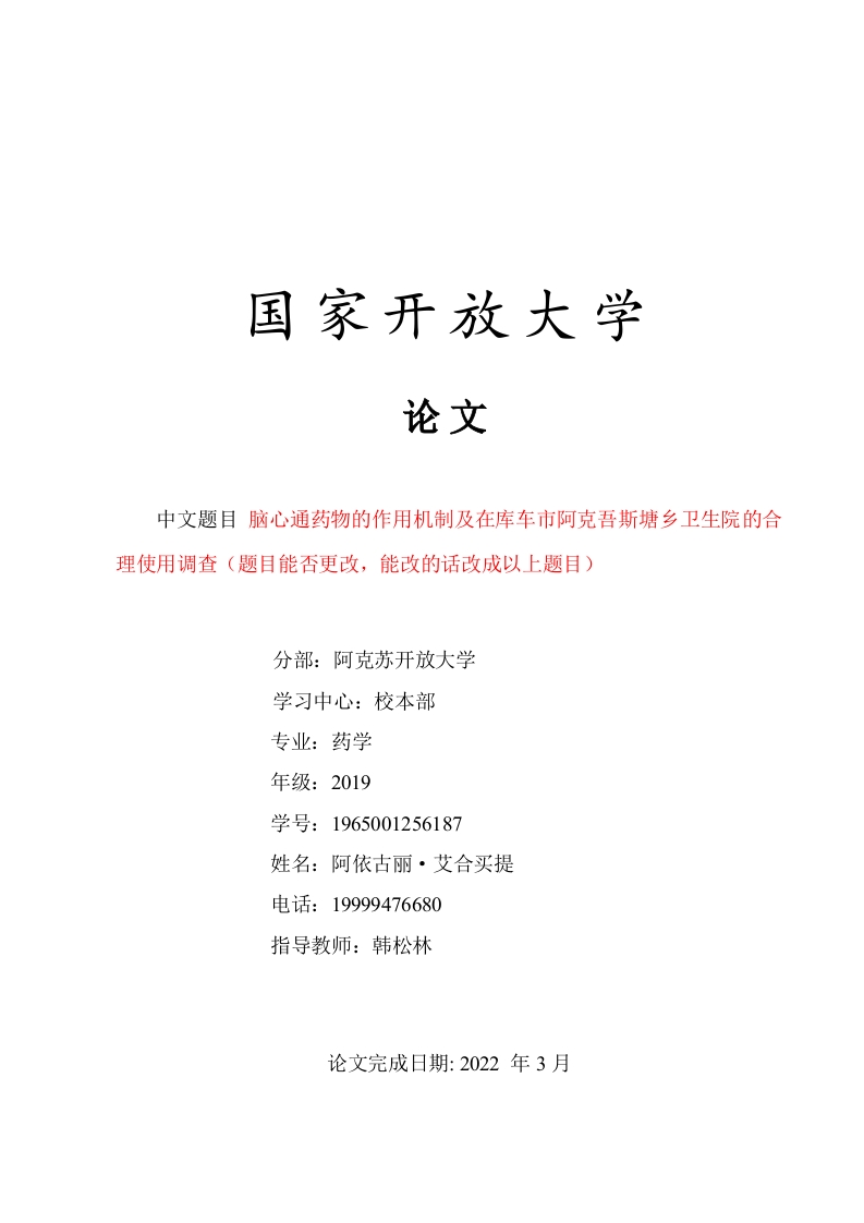 首页毕业论文范文模板库车市阿克吾斯塘乡卫生院脑心通药物的作用机制及合理使用调查