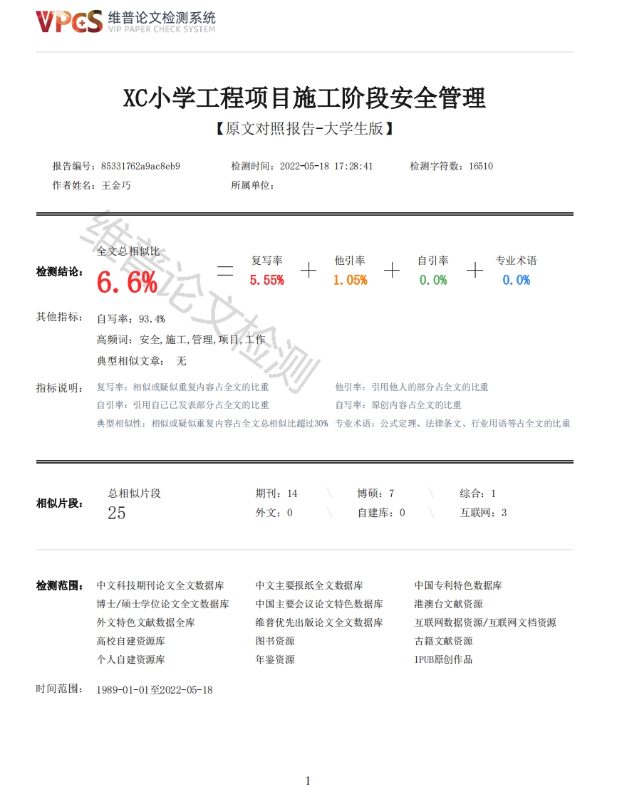 重06-XC小学工程项目施工阶段安全管理