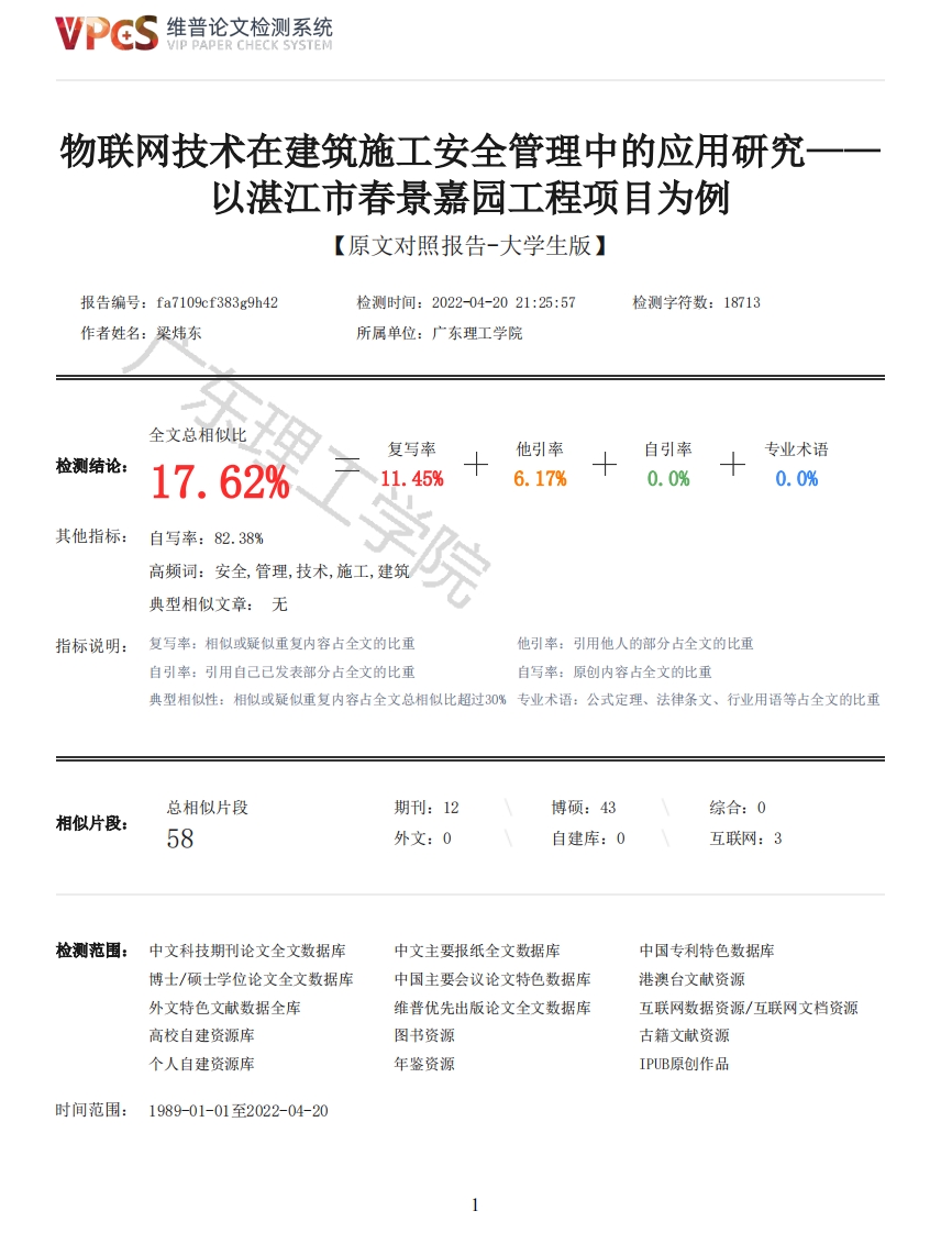 首页毕业论文安全工程重17-物联网技术在建筑施工安全管理中的应用研究以湛江市春景嘉园工程项目为例
