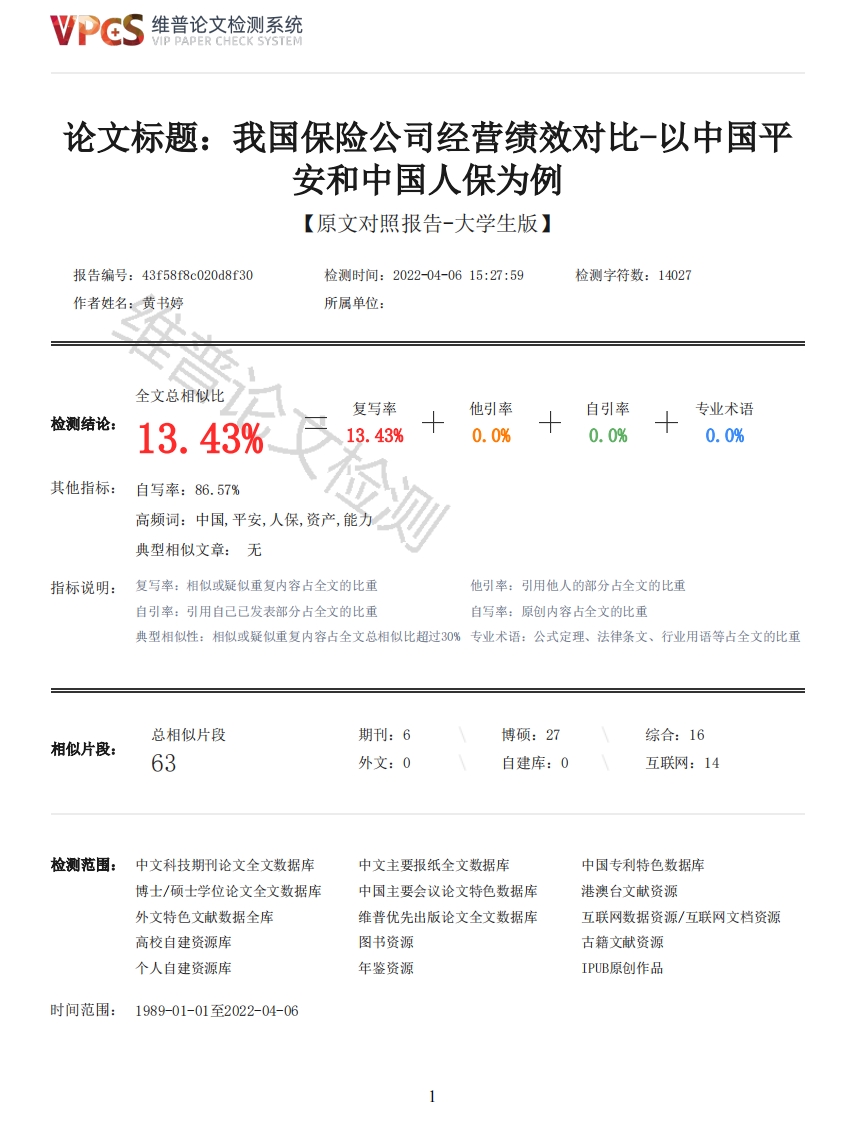 首页毕业论文保险重13-我国保险公司经营绩效对比以中国平安和中国人保为例