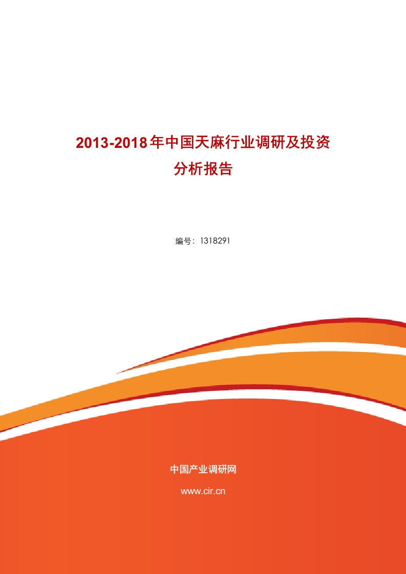 2013-2018年中国天麻行业调研及投资分析报告编号:1318291中国产业调研网www.cir.cn2013-2018年中国天麻行业调研及投资分析报告行业市场研究是当前应用最为广泛的咨询服务,一份专业的行业市场研究分析报告的主要包括以下几个方面:行业相关政策法规投资机会分析行业发展概况市场规模分析行业宏观背景行业市场研究报告市场供需情况未来发展趋势产业竞争格局行业现状分析注:以上内容的数据和研究分析部分,在报告中的比例各占50%。作为通用型调研报告,行业市场研究注重指导企业或投资者了解该行业整体发展态势及经济运行状况,旨在为企业或投资者提供方向性的思路和参考。份有价值的天麻行业市场研究报告,可以完成对天麻行业系统、完整的调研分析工作,使决策者在阅读完天麻行业研究报告后,能够清楚地了解天麻行业现状和整体的发展情况,确保了决策方向的正确性和科学性。中国产业调研网基于多年对客户需求的深入了解,全面系统地研究天麻行业现状及天麻发展前景,注重信息的时效性,从而更好地把握天麻市场变化和天麻行业发展趋势。第2页共34页2013-2018年中国天麻行业调研及投资分析报告天麻为多年生草本植物,分布于全国大部分地区。其干燥块茎亦称天麻,是一味常用而较名贵的中药,临床多用于头痛眩晕、肢体麻木、小儿惊风、癫痫、抽搐、破伤风等症。天麻过去一直依赖野生资源,20世纪70年代野生变家种成功后,家种天麻成为主要商品来源。2011年中药材经历了过山车式的行情,那些企图靠爆炒中药材暴富的商家结果是血本无归,短短的两年时间,他们应该不会忘记,游资也不敢轻易进入中药材这个领域,天麻这个品种也不会有上涨的迹象,根据某医药网站提供的数据,家种100指数2012年上半年同比下跌21%,天麻价格下跌无法避免。2011年上半年萌发菌出现了历史上最好的行情,销量暴增,直接导致的结果是2012年年初天麻零代种严重供大于求,价格一路狂跌,出现了历史上少有的低价格,在湖北宜昌竞然出现了12元每斤的零代种,很多种植户想着与其亏本卖,还不如自己种,就想尽一切办法种植,比如三下锅种植,种植后的老菌棒再次种植等办法,以前那些因为高价买不起种子的种植户也趁低价大量的购买天麻种子扩大种植。2012年的夏天天空很作美,雨水也丰富,几乎没有出现什么持续暴热的天气,多方了解,陕西汉中,安微大别山,湖北宜昌,以及云南,贵州等天麻主要产区天麻长势都比较的好。2013年新鲜天麻价格涨幅较大,批发价平均上涨了20元/公斤左右,零售价平均上涨了100元/公斤左右。据调查,昆明和平村农贸市场和篆新农贸市场目前的零售价为100至200元/公斤,去年同期的零售价为50至100元/公斤。第一章天麻产业相关概述第一节天麻基本阐述一、种植栽培二、天麻营养分析三、天麻适合人群四、天麻食疗作用第二节天麻专利一、下种时间二、种植范围三、栽前备料第3页共34页
