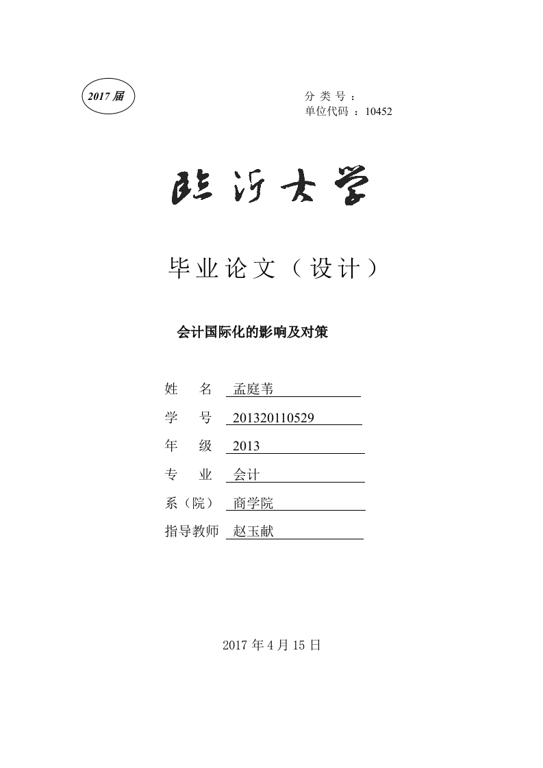 首页毕业论文财务管理会计学-浅析会计国际化的影响及对策