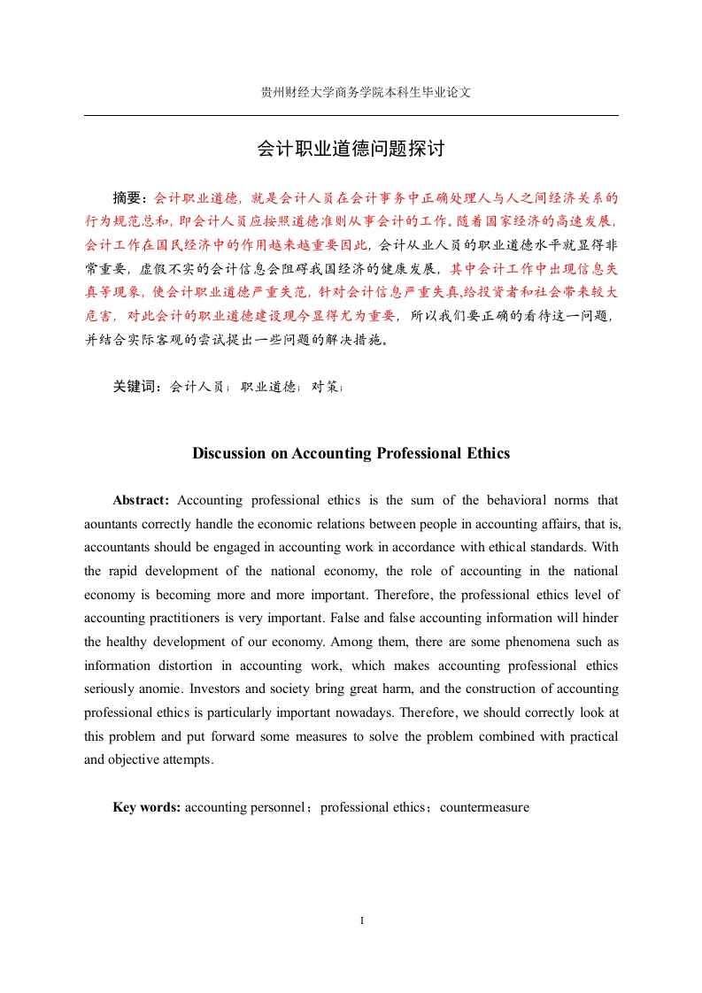 首页毕业论文财务管理会计学专业+会计职业道德问题探讨+未降重