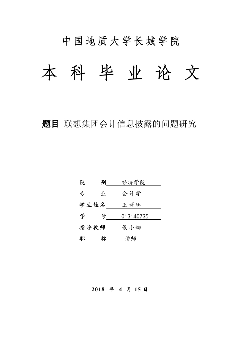 013140735-王琛琢-联想集团会计信息披露的问题研究