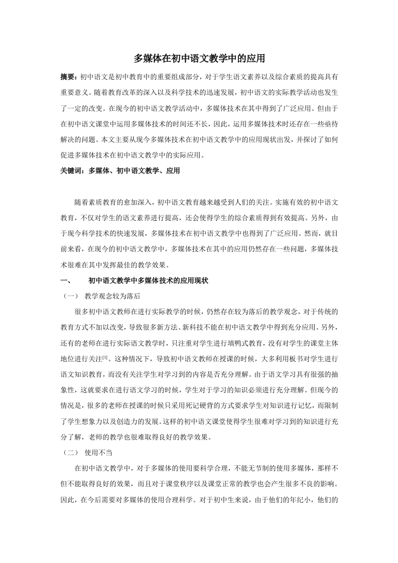 首页毕业论文初等教育2016年11月5日完稿,裴增彦;多媒体在初中语文教学中的应用