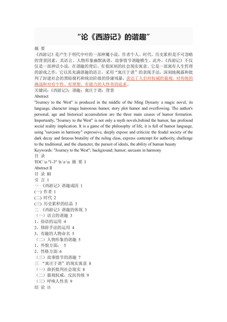 首页毕业论文汉语言文学“论《西游记》的谐趣”