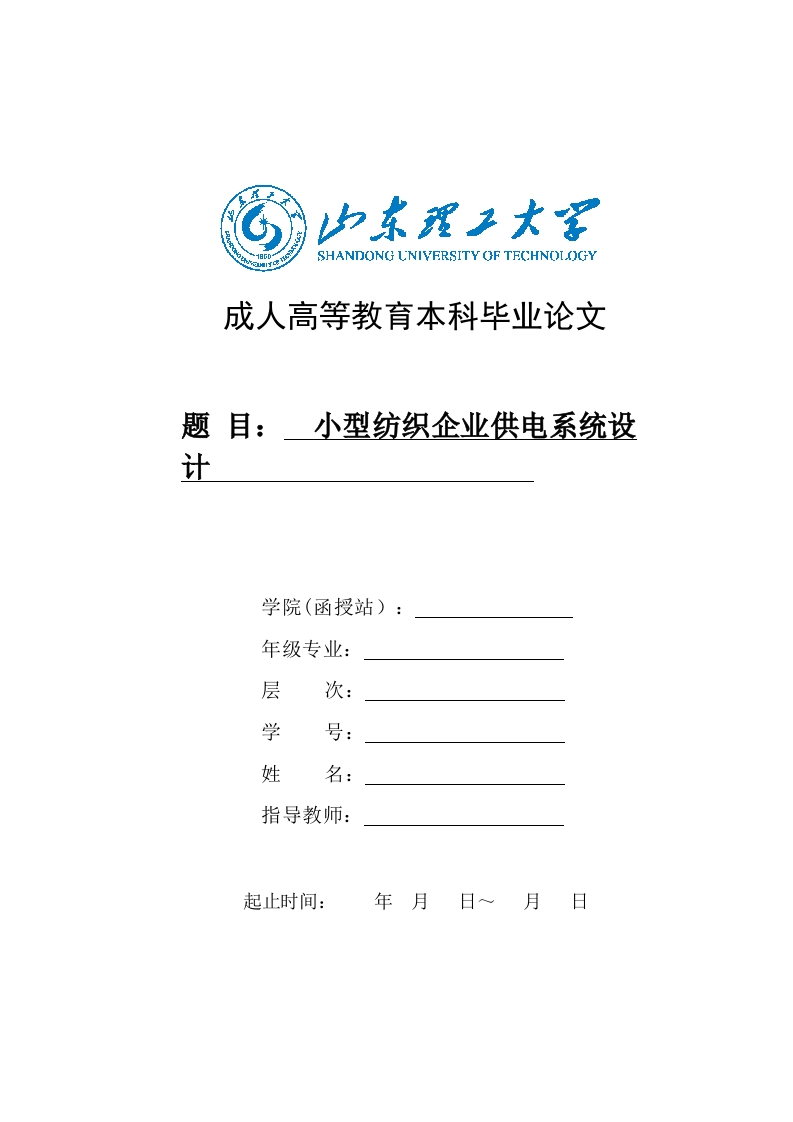 首页毕业论文机电一体化2_小型纺织企业供电系统设计