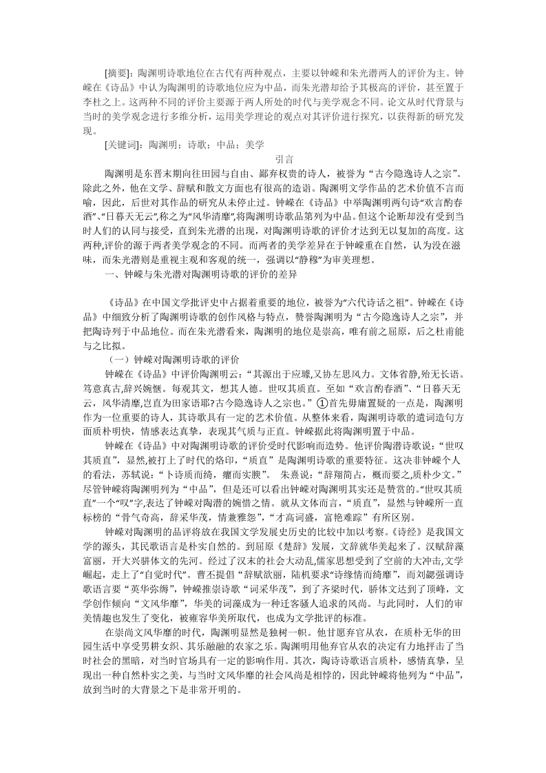 首页毕业论文汉语言文学对评价陶渊明诗歌地位两种观点的评析
