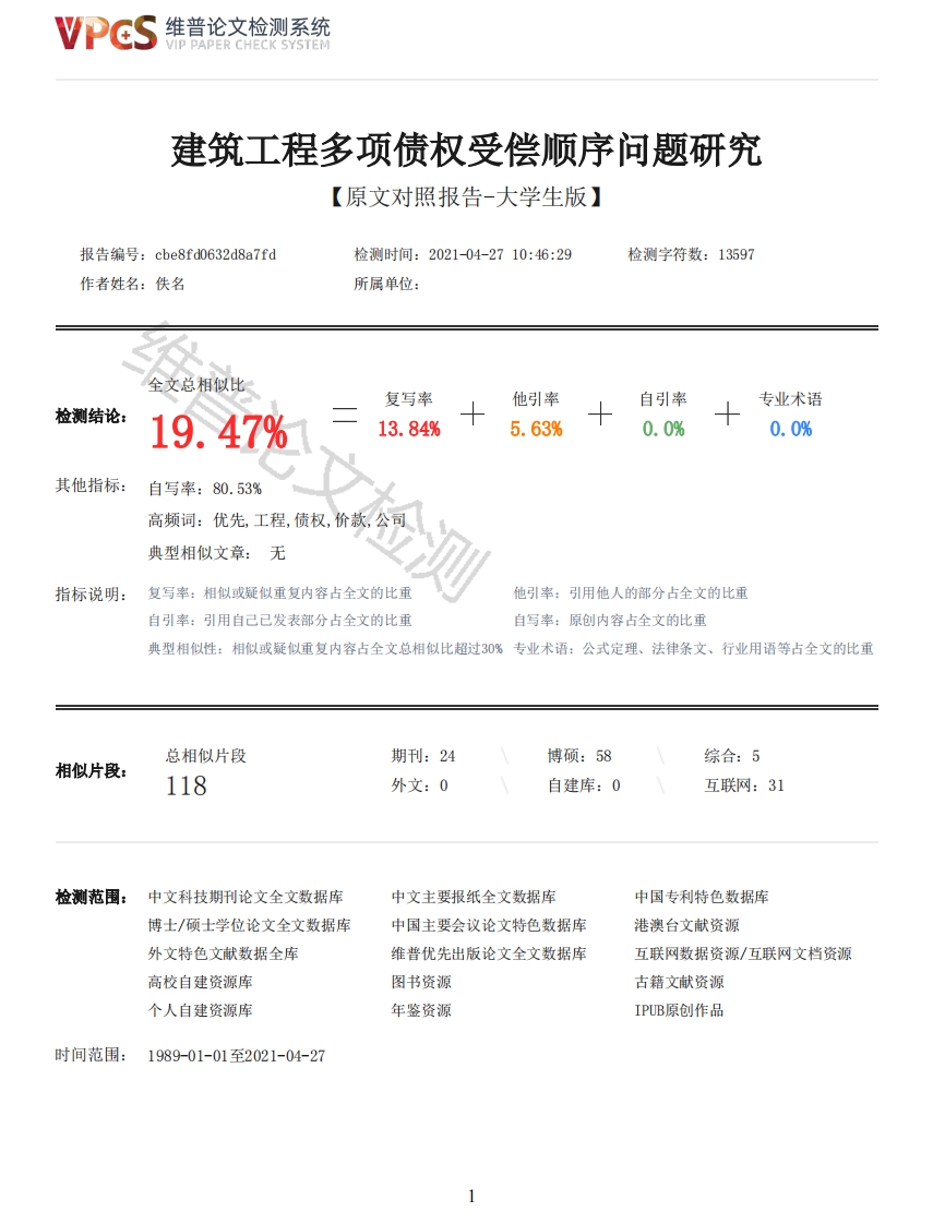 首页毕业论文建筑工程建筑工程多项债权受偿顺序问题研究_原文对照报告