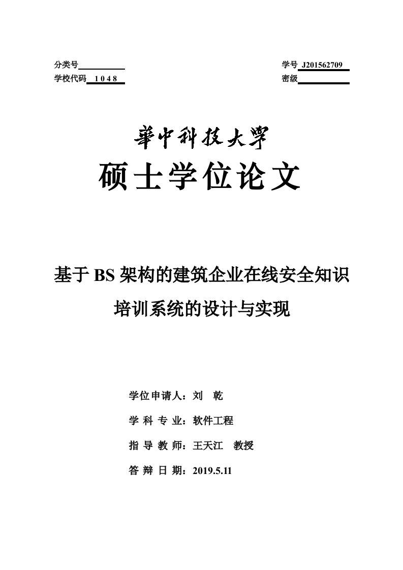 首页毕业论文计算机科学与技术【修改-标蓝色】440_J201562709_刘乾,基于BS架构的建筑企业在线安全知识培训系统的设计与实现,标红7200字