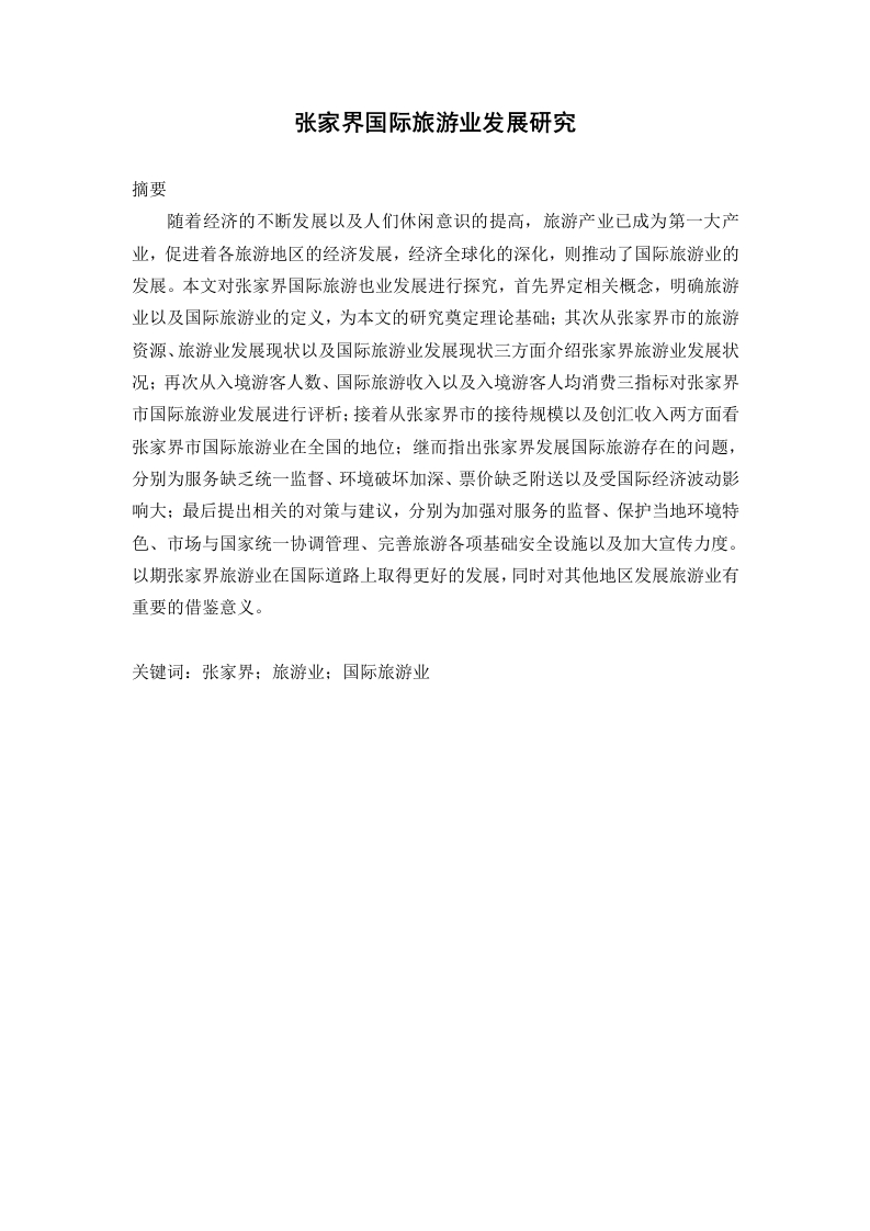 首页毕业论文经济学(正文)张家界国际旅游业发展研究