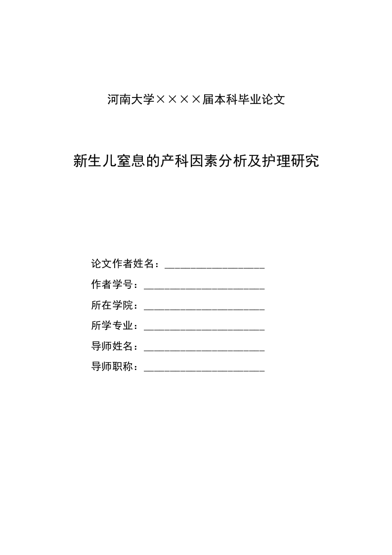 首页毕业论文护理学护理专业-新生儿窒息的产科因素分析及护理研究