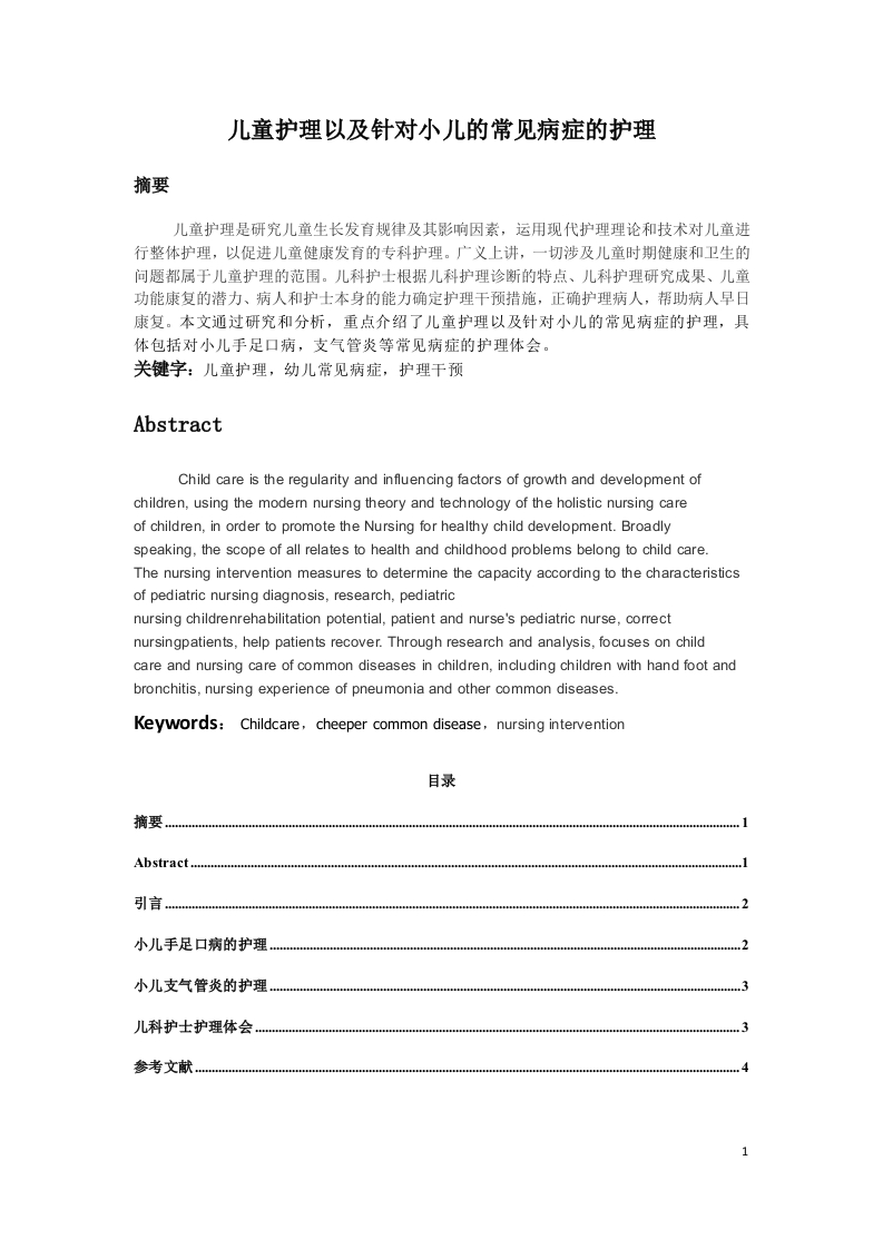 首页毕业论文护理学小儿护理以及针对小二的常见症状的护理3 - 副本