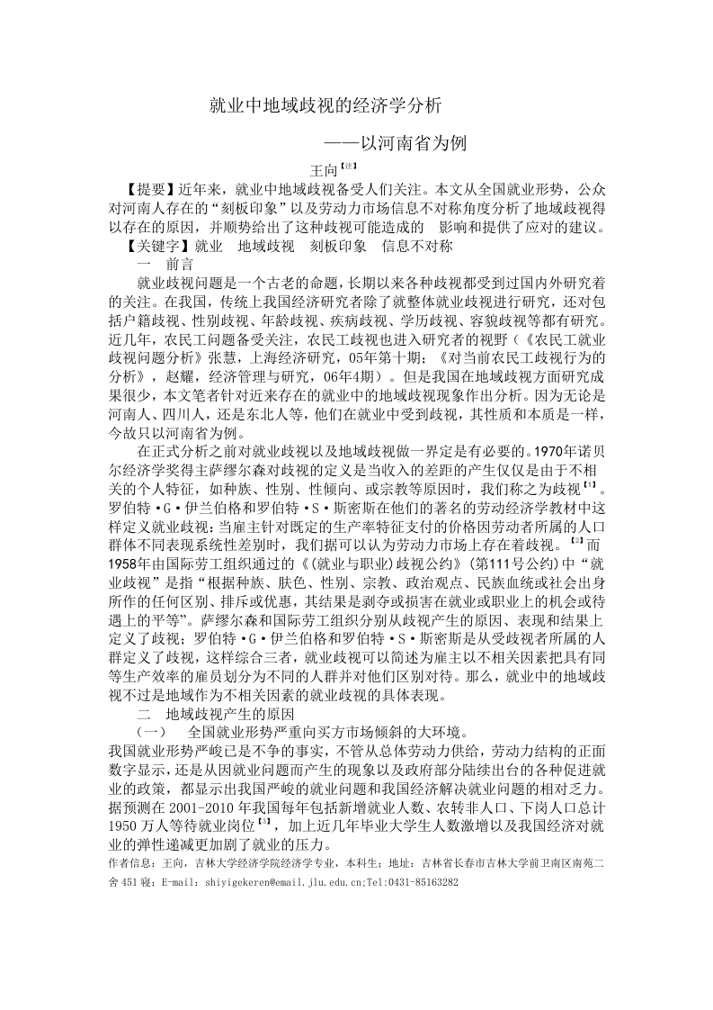 首页毕业论文经济学就业中地域歧视的经济学分析1
