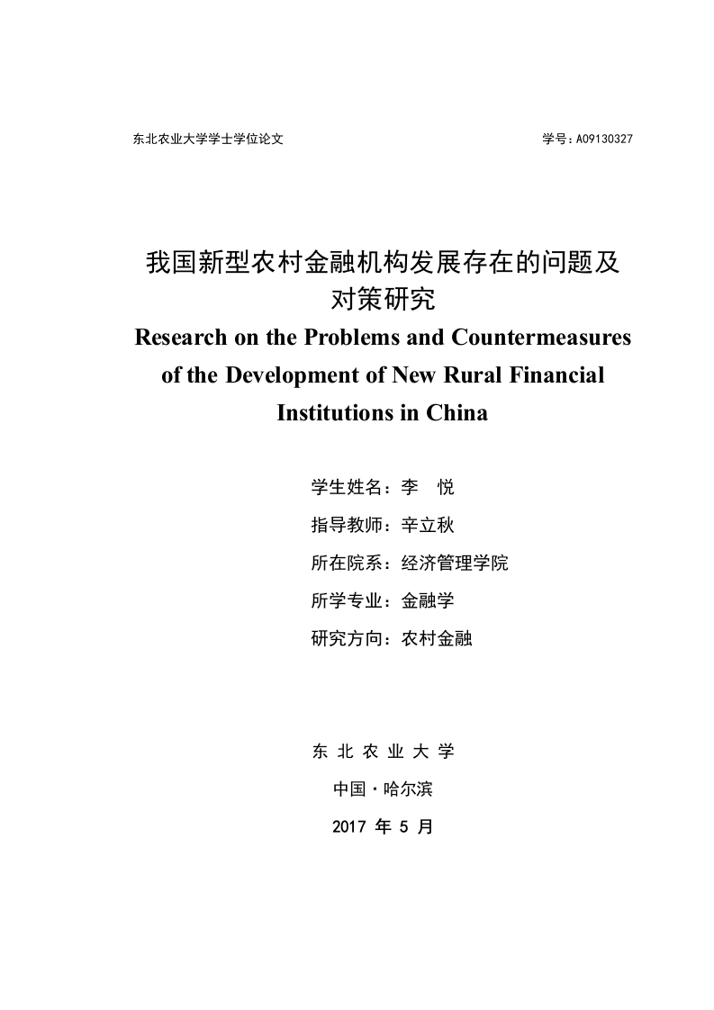 首页毕业论文金融我国新型农村金融机构发展存在的问题及对策研究