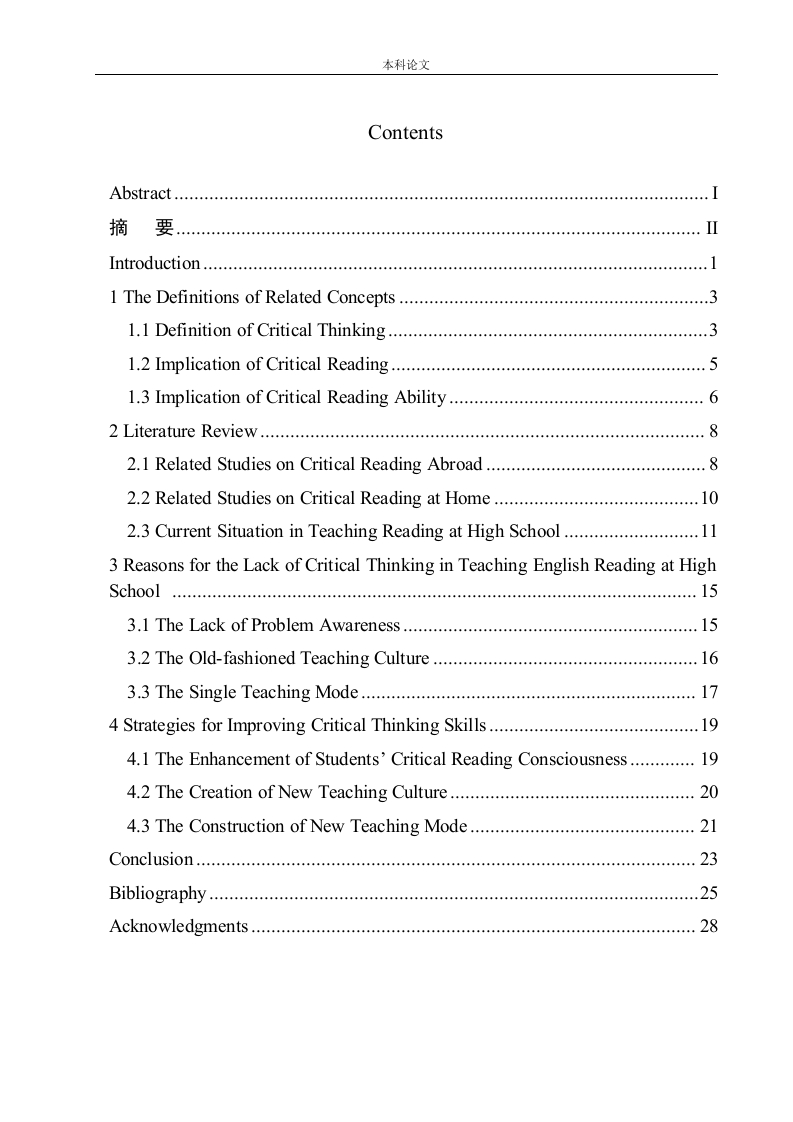 首页毕业论文英语161842119-田蓉-An Analysis of Critical Thinking in Teaching English Reading at High School