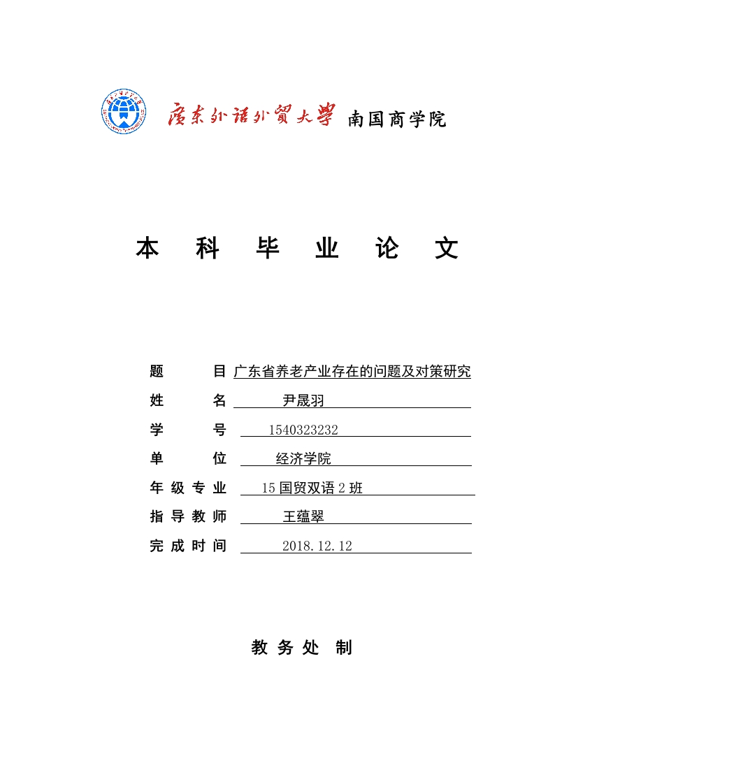 首页毕业论文范文模板3.2-论-广东省养老产业存在的问题及对策研究 最最最新(2)