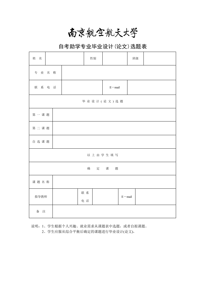 首页毕业论文范文模板3.毕业设计(论文)选题表---专起本