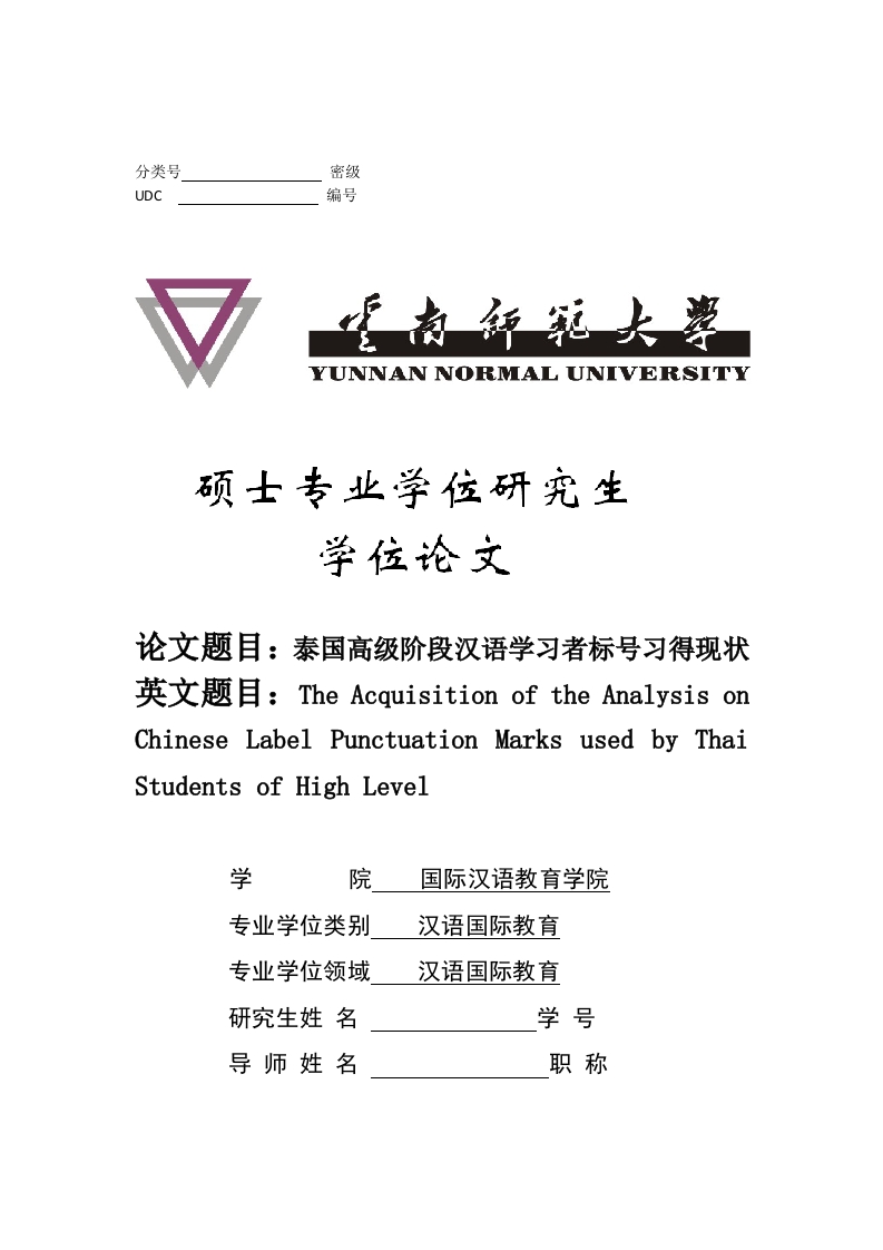首页毕业论文范文模板王晓路-14045300018-泰国高级阶段汉语学习者标号习得现状分析