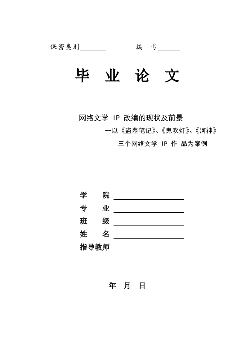 首页毕业论文范文模板网络文学 IP 改编的现状及前景-以《盗墓笔记》、《鬼吹灯》、《河神》 11000
