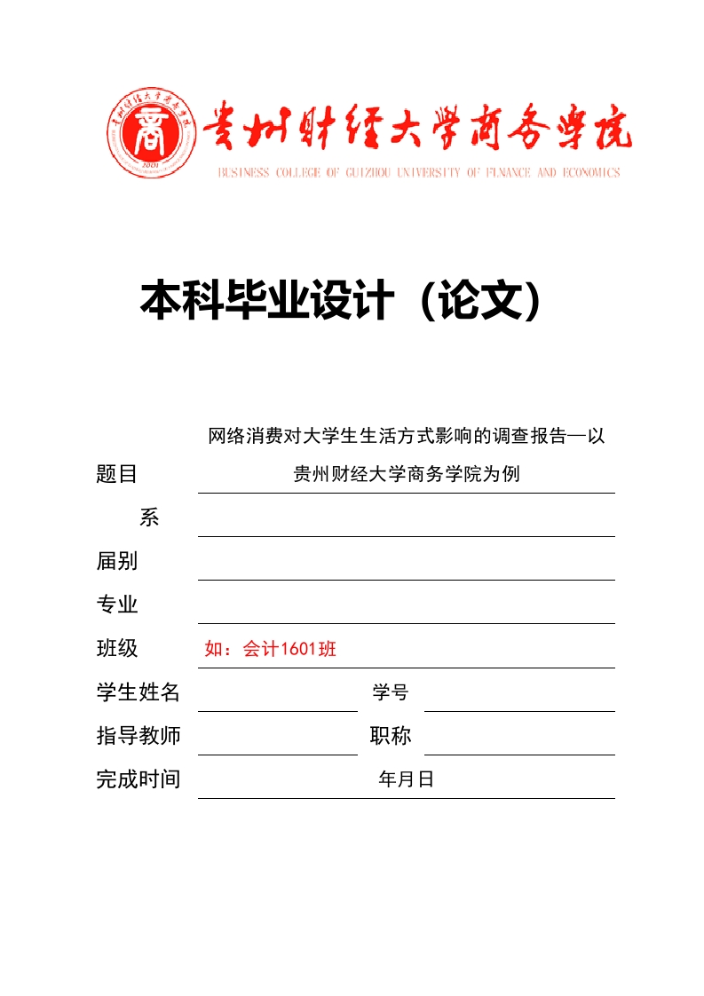 首页毕业论文范文模板网络消费对大学生生活方式影响的调查报告—以贵州财经大学商务学院为例