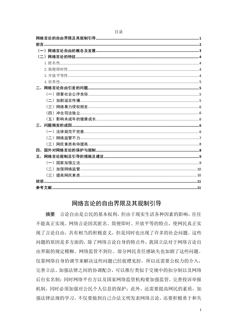 首页毕业论文范文模板网络言论的自由界限及其规制引导