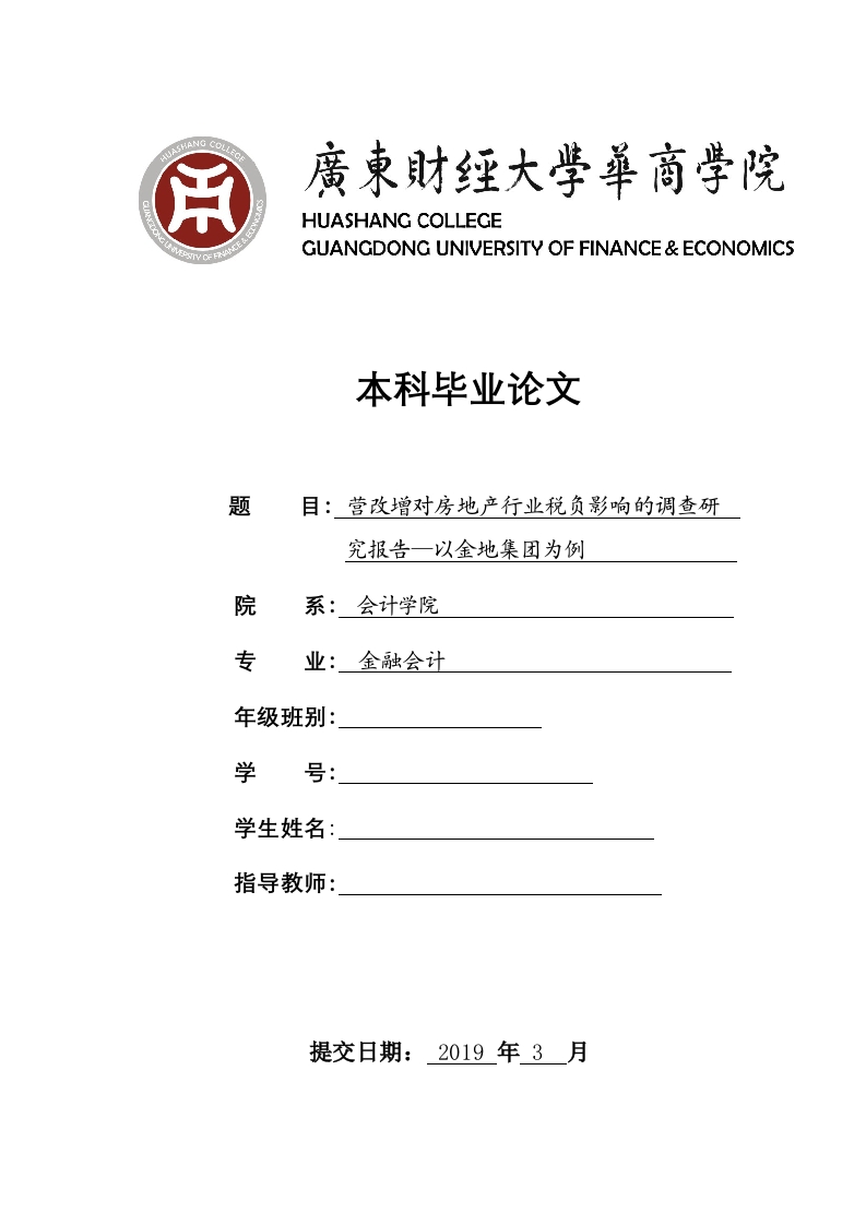 首页毕业论文范文模板营改增对房地产行业税负影响的调查研 究报告—以金地集团为例
