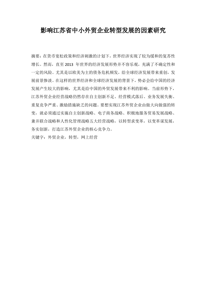 首页毕业论文范文模板影响江苏省中小外贸企业转型发展的因素研究