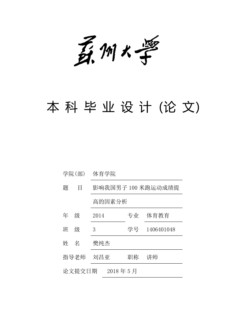 首页毕业论文范文模板影响我国男子100米跑运动成绩提高的因素分析